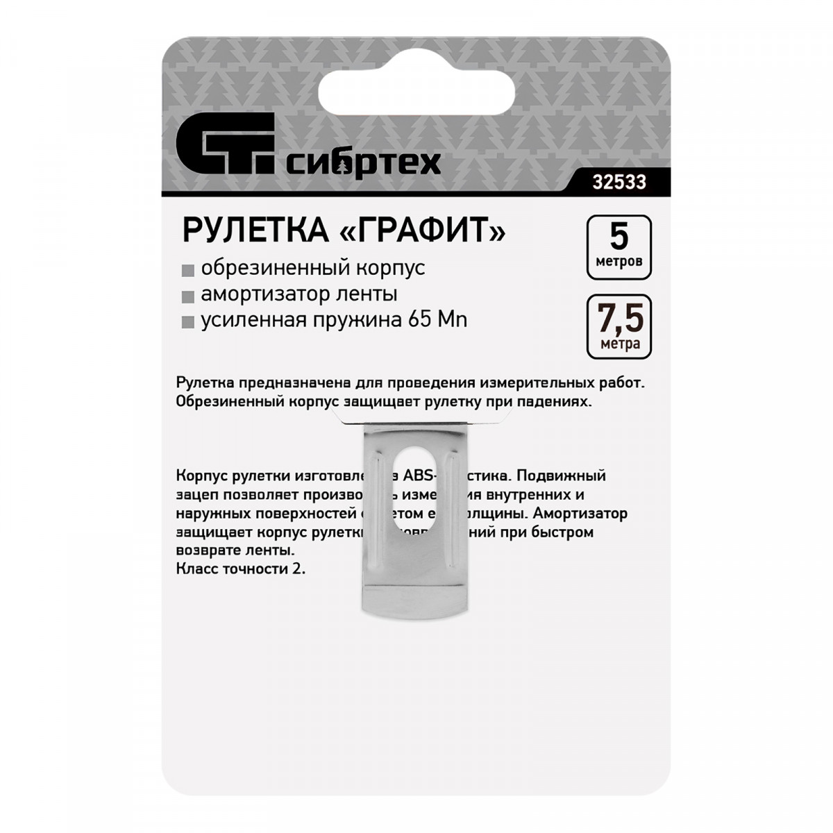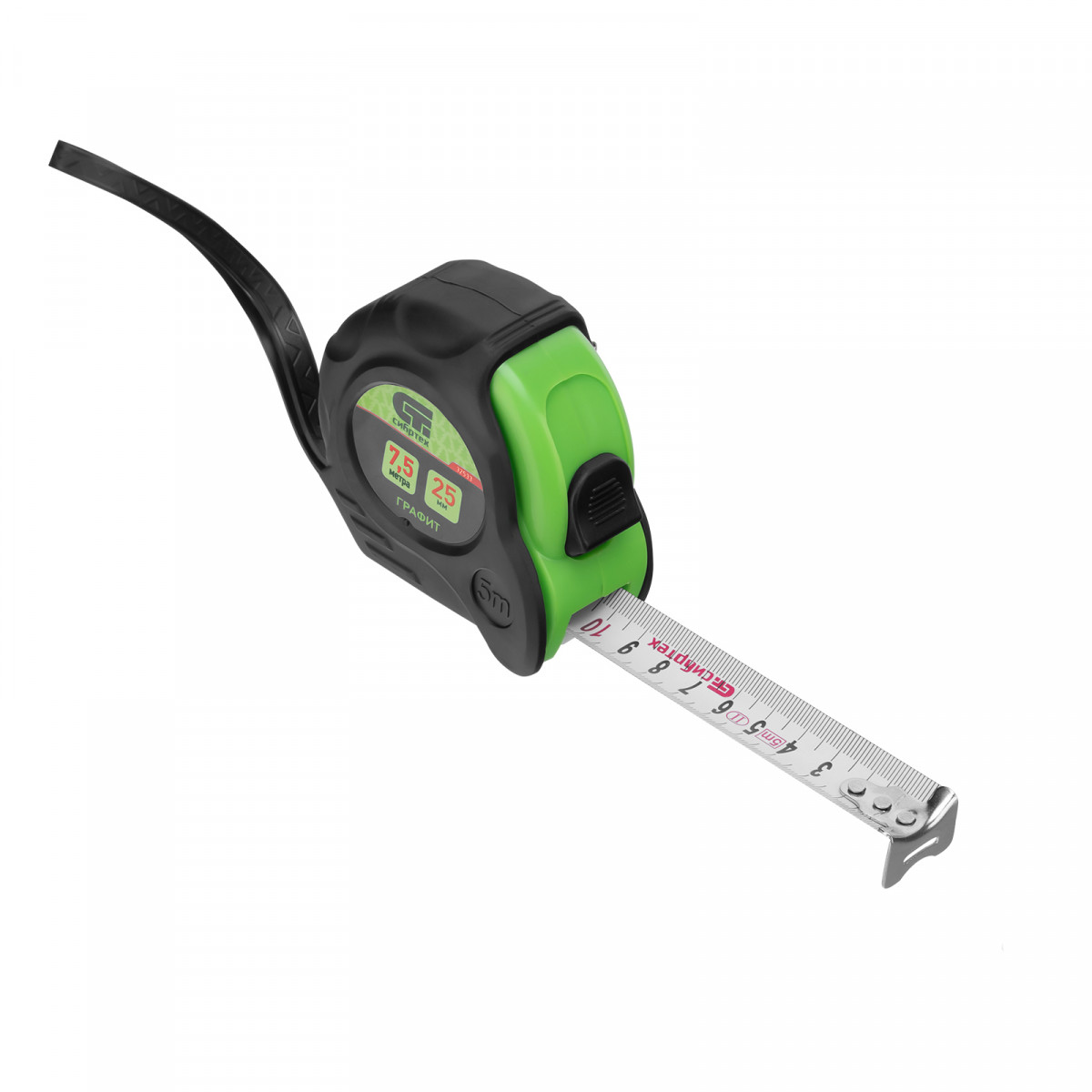Рулетка Графит,обрезиненный корпус,амортизатор,7,5 м х 25 мм Сибртех