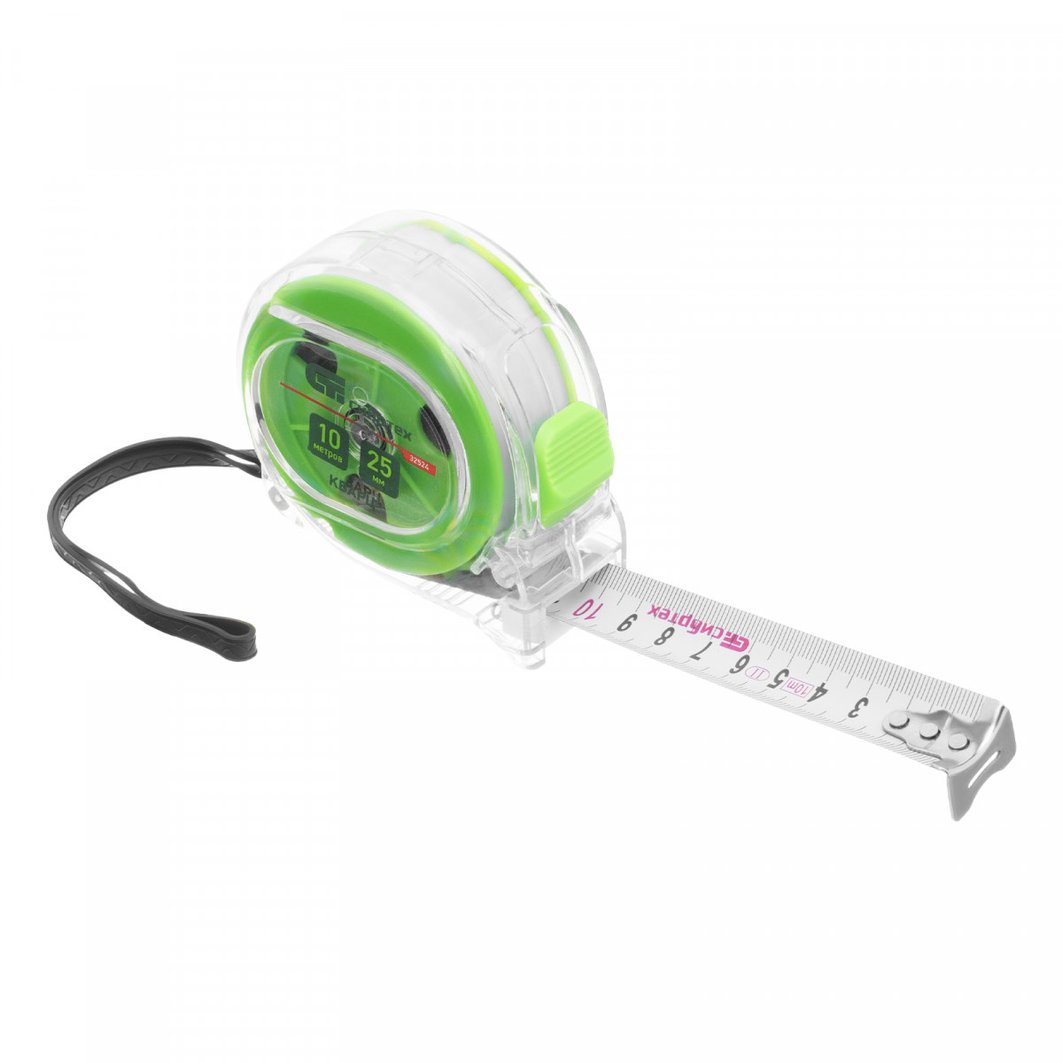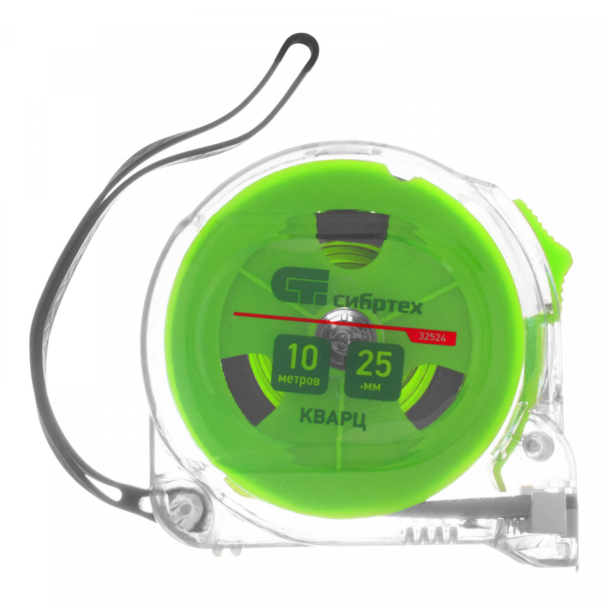 Рулетка Кварц,прозрачный корпус,амортизатор,10 м х 25 мм Сибртех