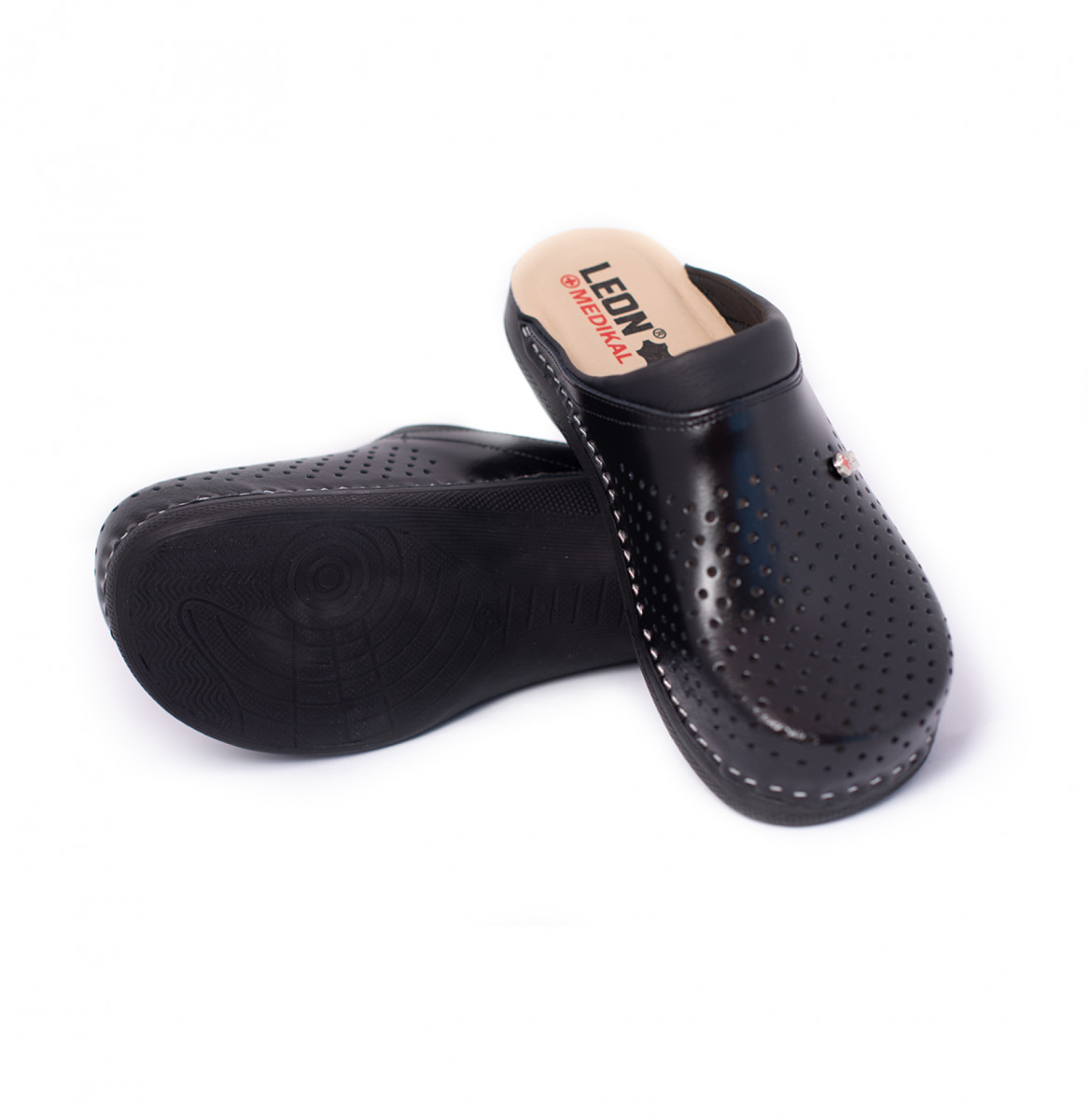 Сабо Леон - женские медицинские сабо MED100 разработанные в Европе с участием врачей ортопедов. Верх и подкладка обуви из натуральной кожи, применена кожаная ортопедическая стелька. Слой массажной пены с памятью под стелькой принимает форму вашей ступни и дает опору, подходящую именно вам. Это обеспечивает человеку максимальный комфорт и снижает нагрузку на суставы и позвоночник.Сабо медицинские, они подходят как профессиональная обувь для врачей, поваров и всех, кому приходиться много времени проводить на ногах. При носке значительно уменьшается отечность ног и улучшается кровообращение.Легкая полиуретановая подошва, оснащена амортизационной вставкой, что уменьшает усталость ног. Антискользящая основа позволит чувствовать себя уверенно на кафеле и паркете.Верх обуви изготовлен из мягкой 100% кожи, устойчивой к износу. Она не впитывает влагу и запахи, ее легко мыть. Перфорация обеспечивает хорошую вентиляцию и ноги остаются сухими. Выбор профи.