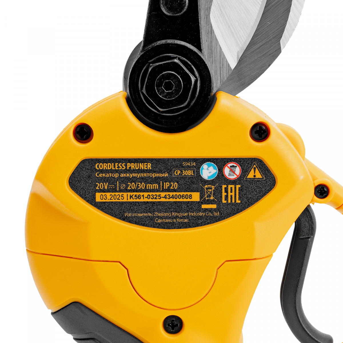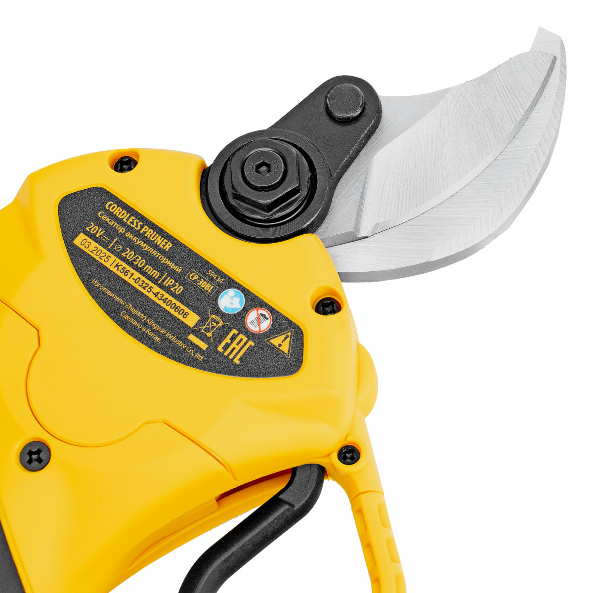 Секатор аккумуляторный, бесщет., CP-30BL, Li-Ion, 20 В, лезвия SK5 // Denzel