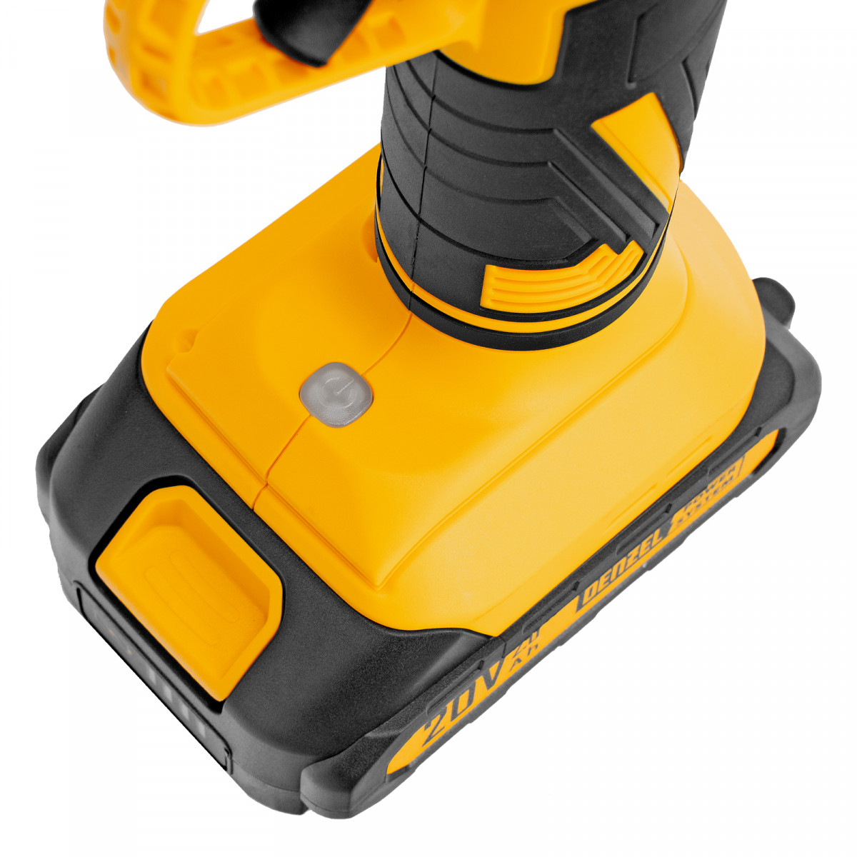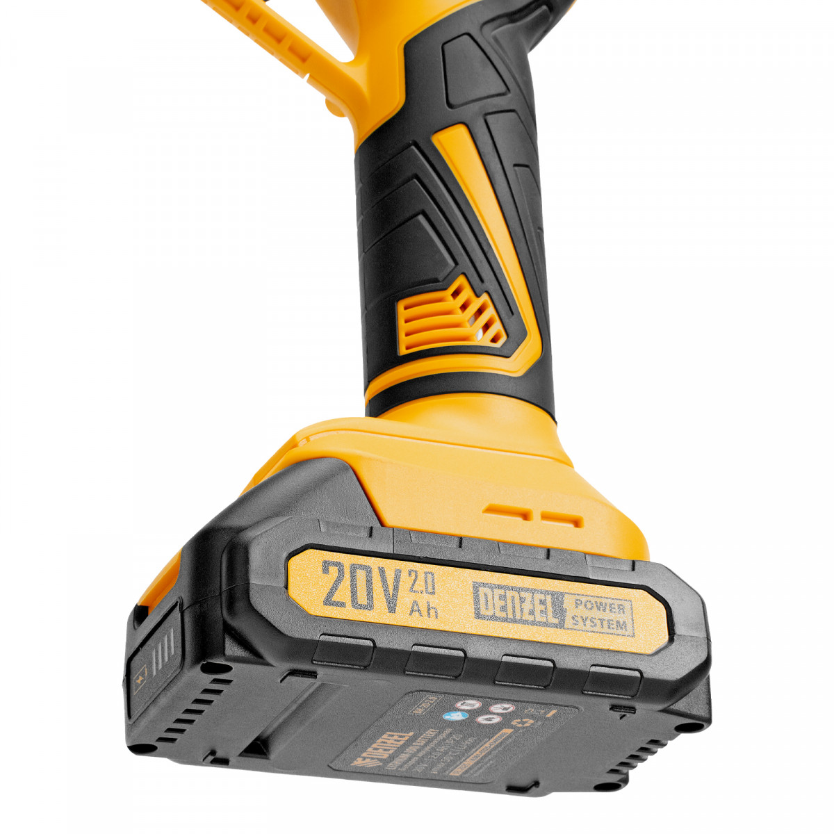 • Надежность — аккумулятор Li-Ion без эффекта памяти быстро заряжается, долго служит, а также совместим со всеми инструментами единой платформы Denzel Power System 20V.