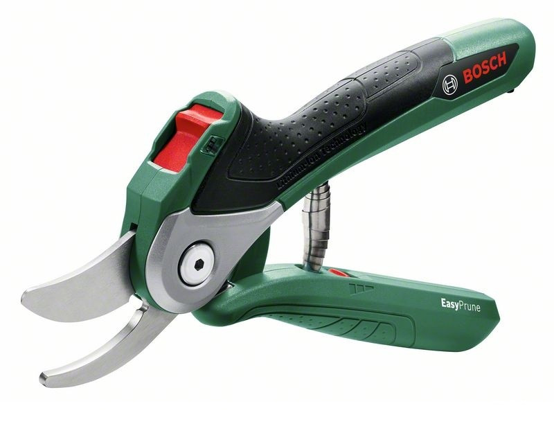 Аккумуляторный секатор Bosch EasyPrune 0.600.8B2.000 служит для обрезания кустов и толстых веток. Работает от литий-ионного аккумулятора, который характеризуется отсутствием эффекта памяти и саморазряда.