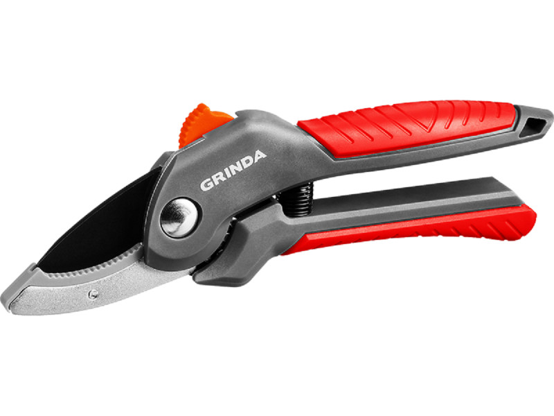 Все секаторы GRINDA являются прочными, долговечными и удобными изделиями, обеспечивая комфортный и лёгкий рез. Они выполнены из высококачественных материалов гарантирующих долгий срок эксплуатации. Лезвия секатора изготовлены из высококачественной углеродистой стали и закалены. Тефлоновое покрытие защищает лезвие от воздействия окружающей среды и увеличивает срок службы секатора.