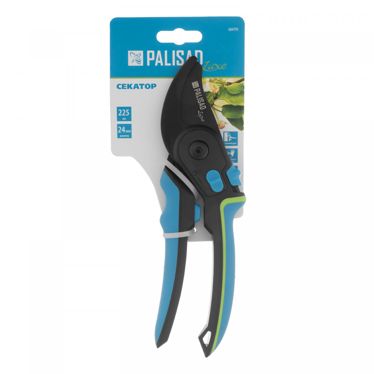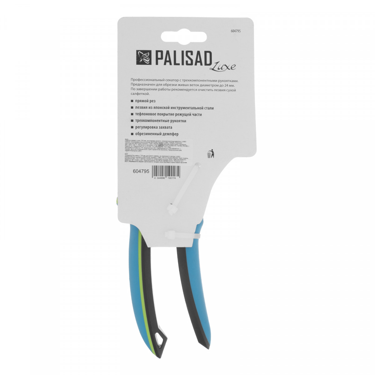 Секатор прямого реза, 225 мм, регулировка захвата, трехкомпонентные рукоятки, Luxe, Palisad
