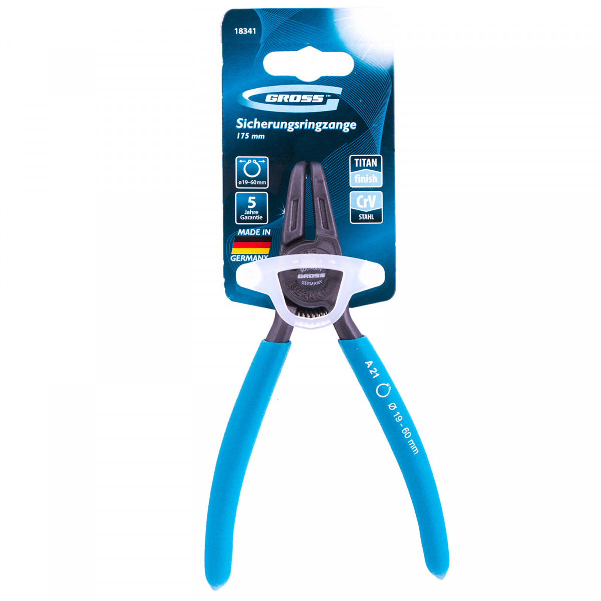 Съемник Gross 18341 длиной 165 мм, с изогнутыми губками, работает на разжим внешних стопорных колец диаметром 19-60 мм для дальнейшей установки их на вал механизма или снятия с него. Имеет наконечники диаметром 1,8 мм и подходит для колец с проушинами соответствующего размера. Изогнутые губки упрощают работу в труднодоступных местах. Инструмент будет полезен в мастерской, автосервисе, а также дома, в гараже или на даче.