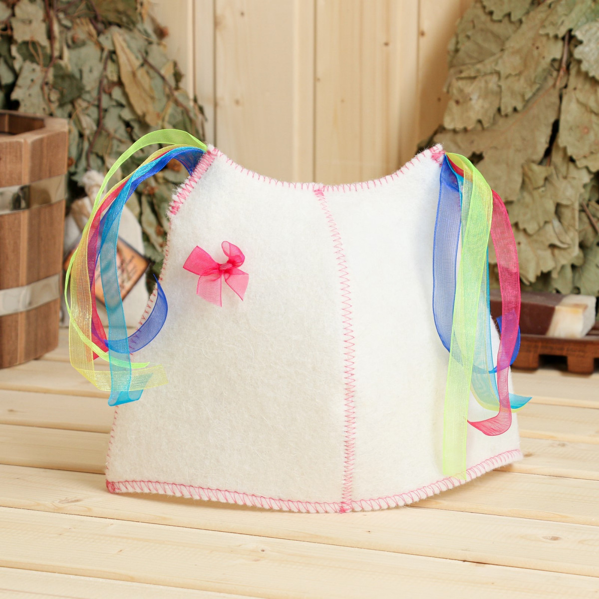 Шапка для бани детская Радужные хвостики белая 5-7 лет