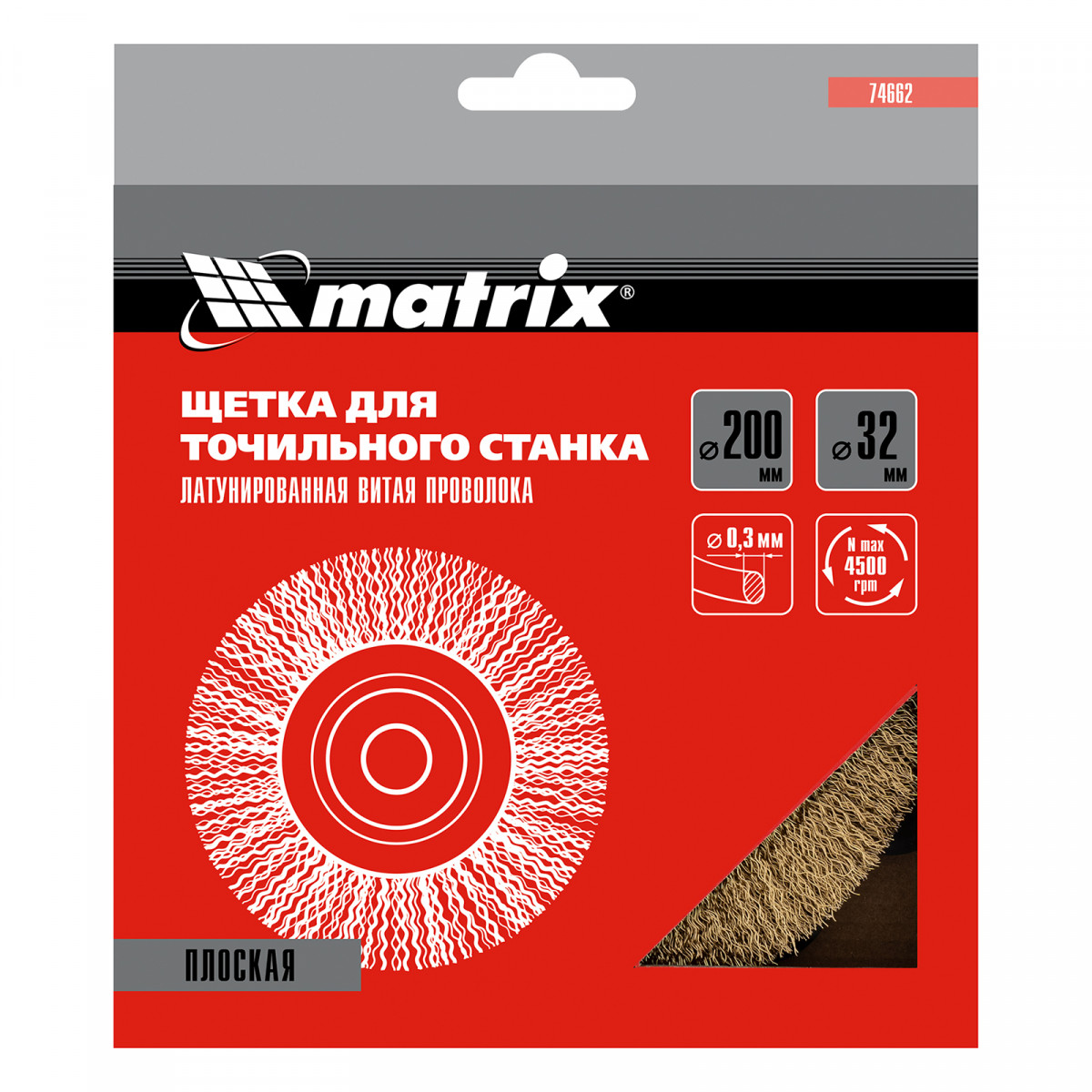 Щетка для точила, 200 мм, посадка 32 мм, плоская, латунированная витая проволока Matrix