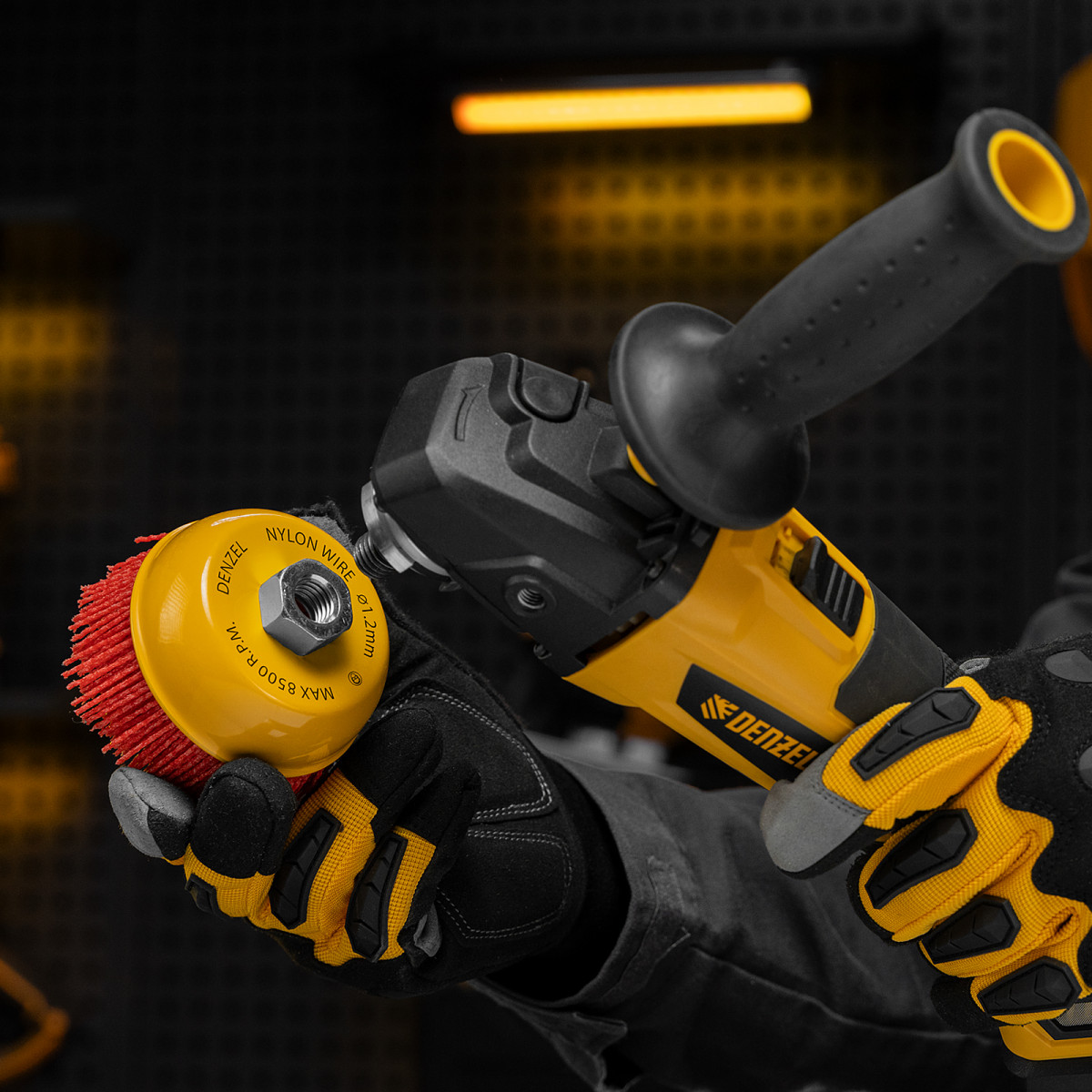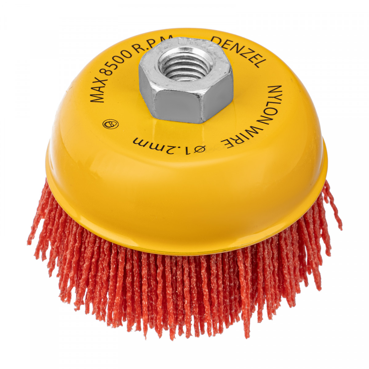 Щетка для УШМ, 100 мм, Чашка, нейлоновая щетина, М14 Denzel