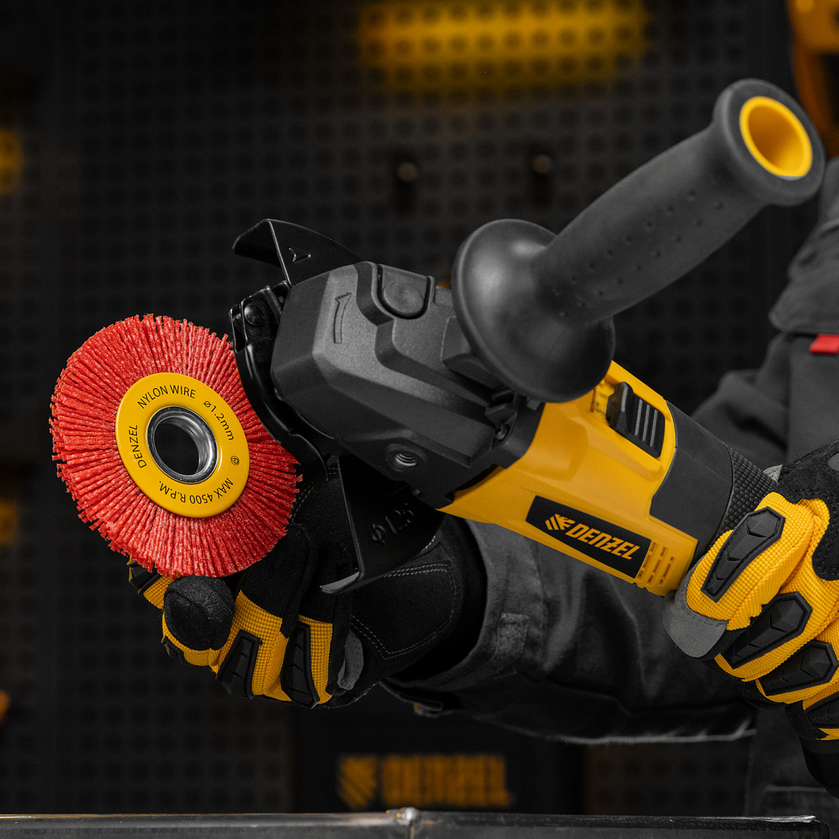 Щетка для УШМ, 100 мм, Плоская, нейлоновая щетина, посадка 22,2 мм Denzel