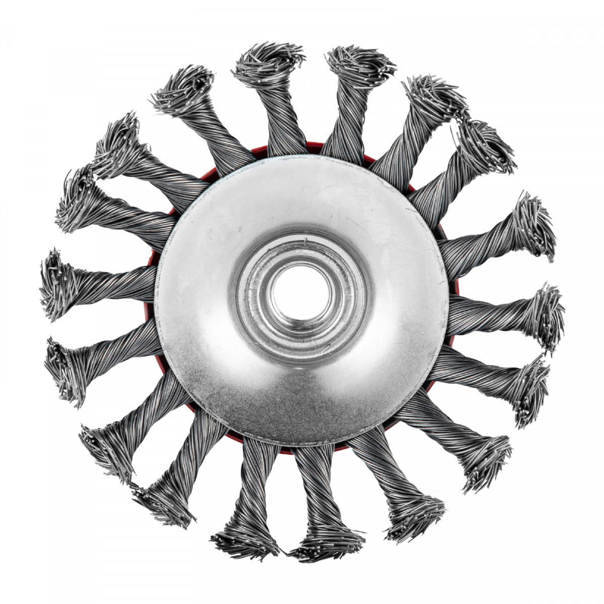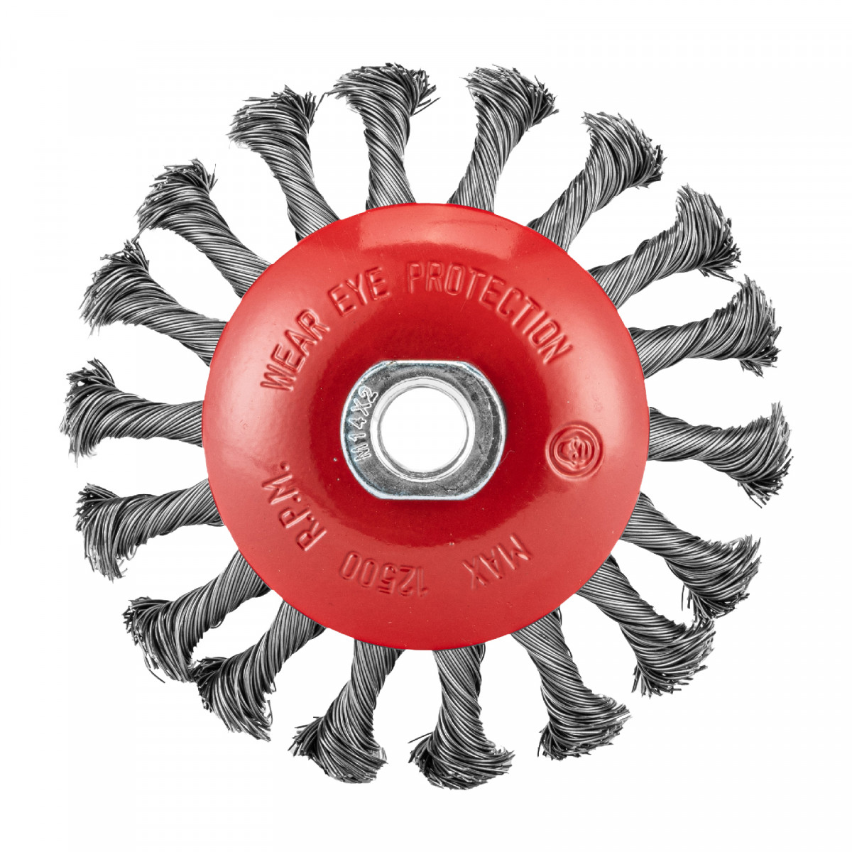 Щетка Matrix «тарелка» 74610 диаметром 115 мм, с щетиной из крученой проволоки толщиной 0,5 мм, устанавливается на УШМ при помощи гайки М14. Выполнена в форме тарелки, за счет чего подходит для грубой (черновой) обработки плоских и угловых поверхностей. Удаляет ржавчину, загрязнения, лакокрасочные покрытия, подходит для зачистки сварных швов. Использование на скорости до 12500 об/мин позволяет продлить срок службы насадки.