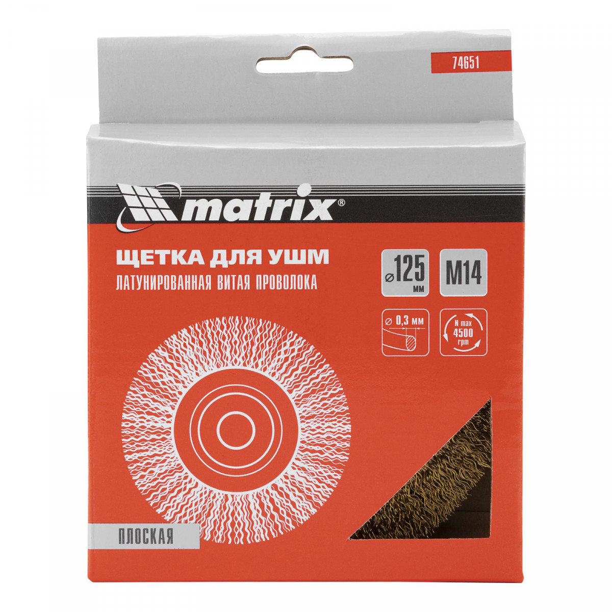 Щетка для УШМ, 125 мм, М14, плоская, латунированная витая проволока Matrix