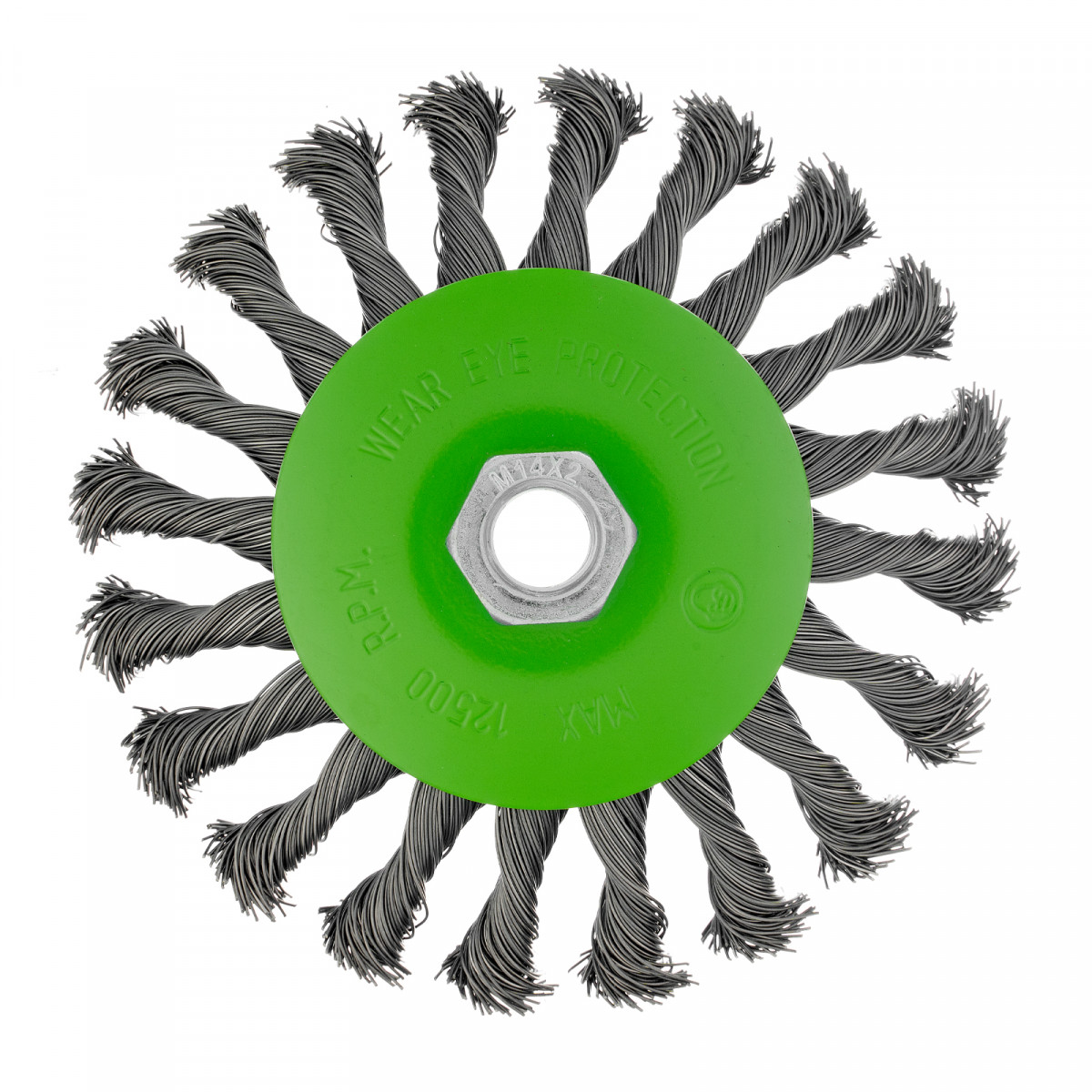 Щетка Сибртех «тарелка» 746117 диаметром 125 мм, с щетиной из крученой проволоки толщиной 0,5 мм, устанавливается на УШМ при помощи гайки М14. Выполнена в форме тарелки, за счет чего подходит для грубой (черновой) обработки плоских и угловых поверхностей. Удаляет ржавчину, загрязнения, лакокрасочные покрытия, подходит для зачистки сварных швов. Использование на скорости до 12500 об/мин позволяет продлить срок службы насадки.