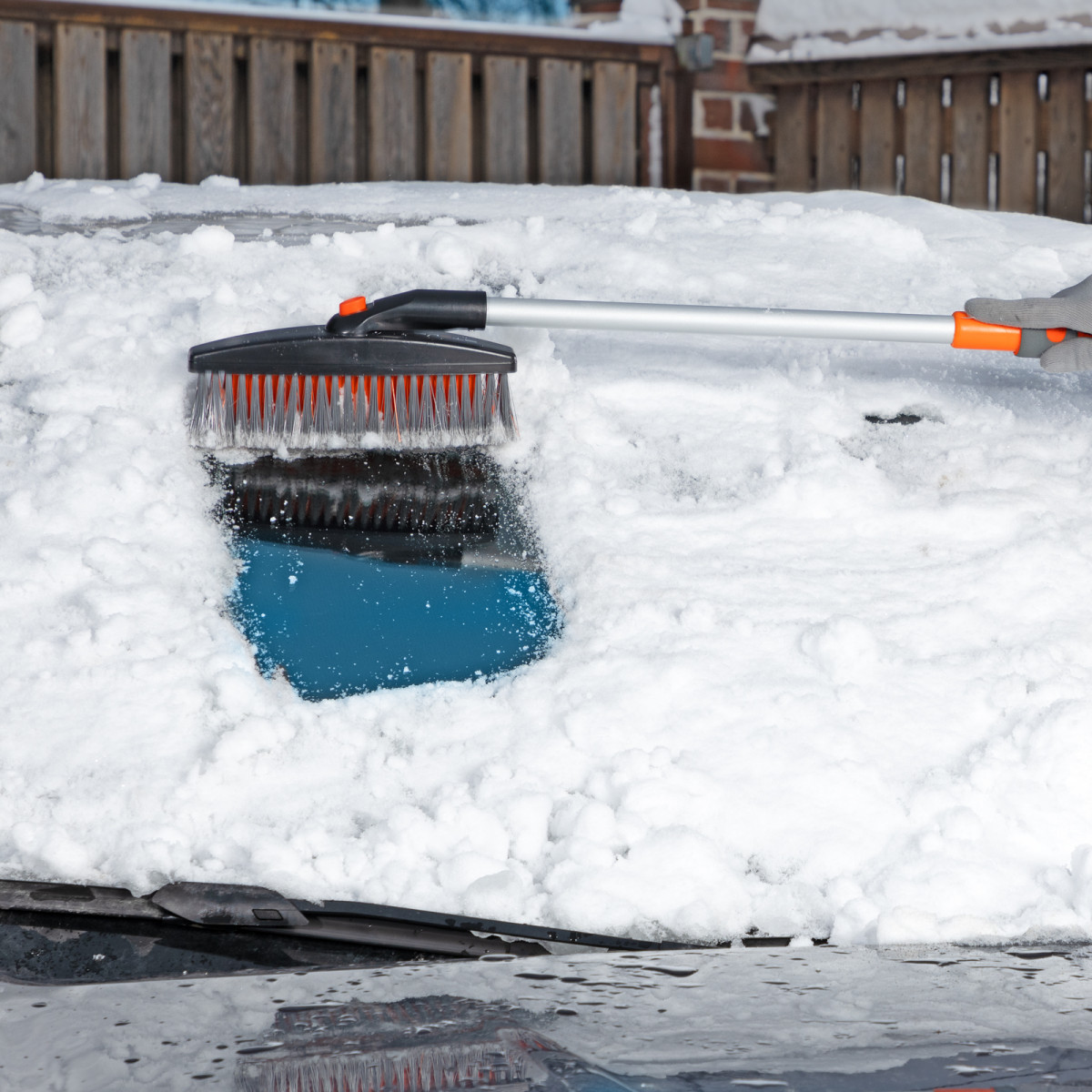 - Щетка-скребок имеет плотную щетину, распушенную на концах, поэтому эффективно убирает слой снега, не царапая поверхность кузова.