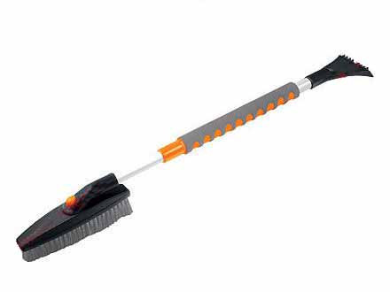 Усиленная рукоятка из алюминиевого сплава с удлиненным мягким держателем. Густая распушенная щетина для бережной очистки снега с поверхности. Мощный скребок с зубьями для дробления льда.