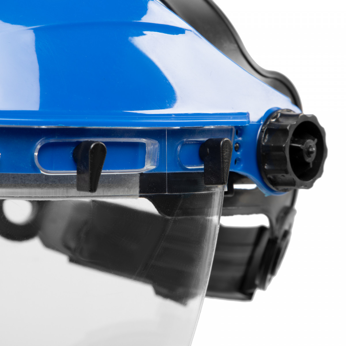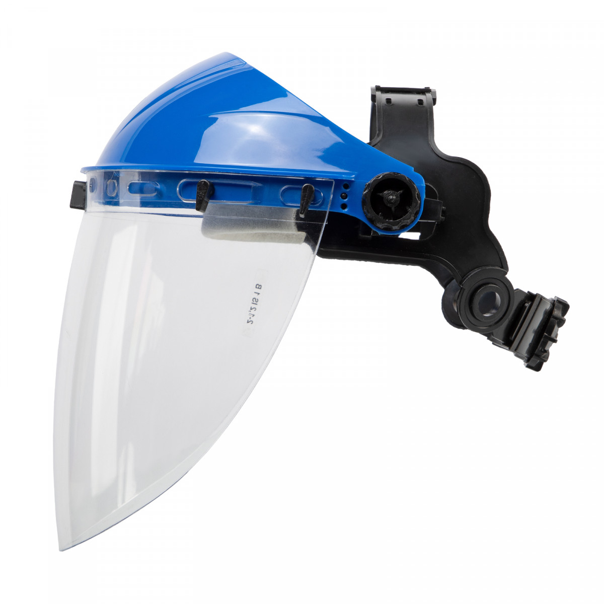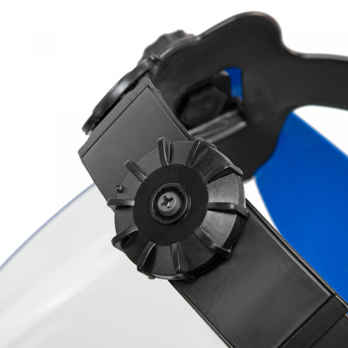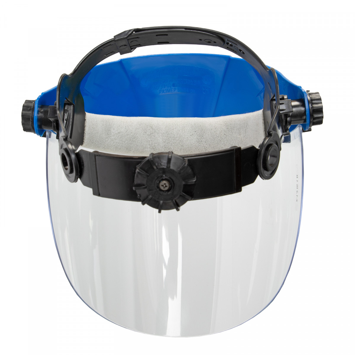 • Защита верхней части головы — щиток имеет козырек из противоударного термостойкого пластика.