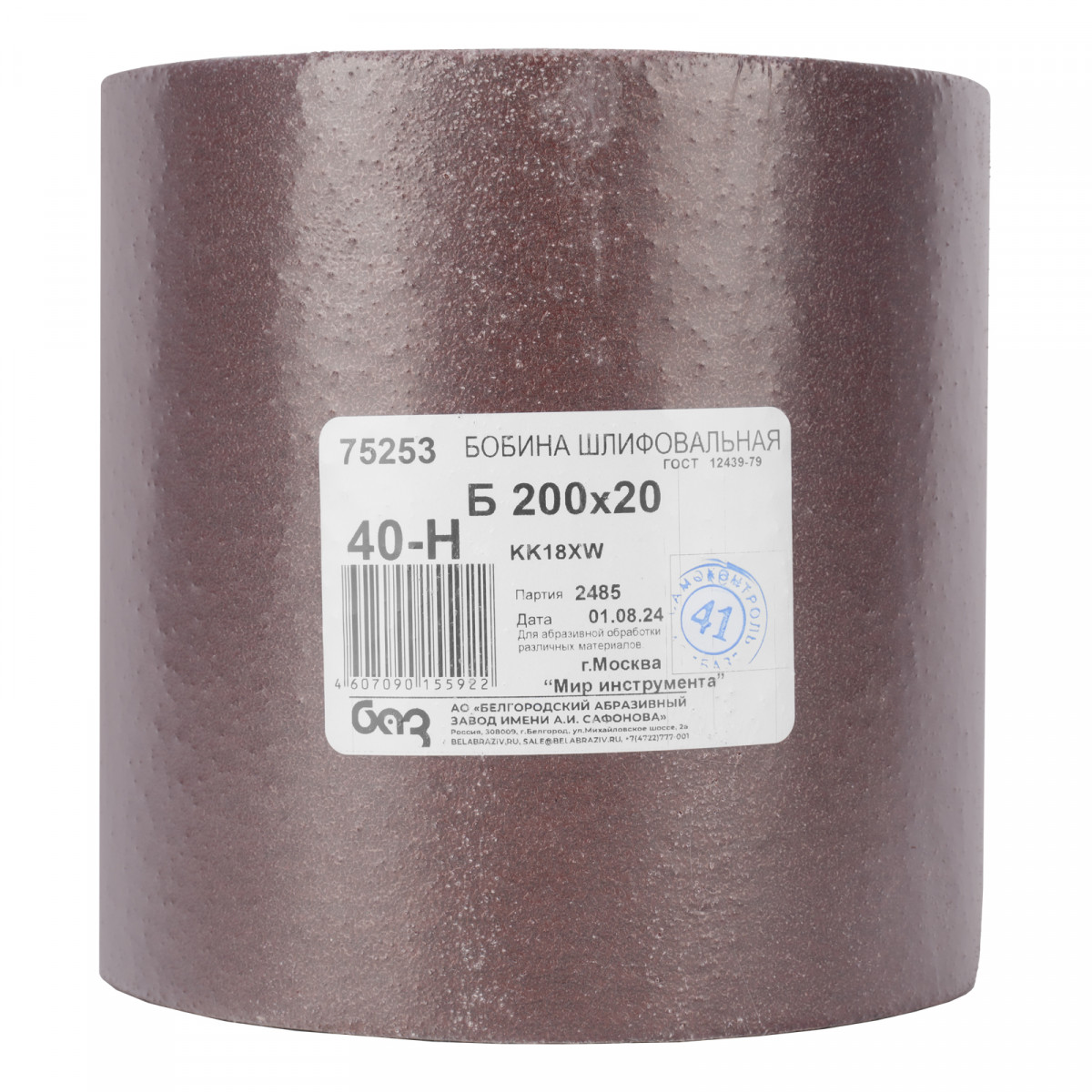Водостойкая шкурка на тканевой основе БАЗ 75253 серии KK18XW, с зернистостью 40H (P 40) и размером 200 мм x 20 м, поставляется на бобине и применяется для выполнения грубых работ по дереву и металлу. Крупнозернистый абразив P 40 с размером частиц 400-500 мкм оптимален для первичного выравнивания, удаления сучков и заусенцев, снятия ржавчины, подготовки материалов к последующей обработке.