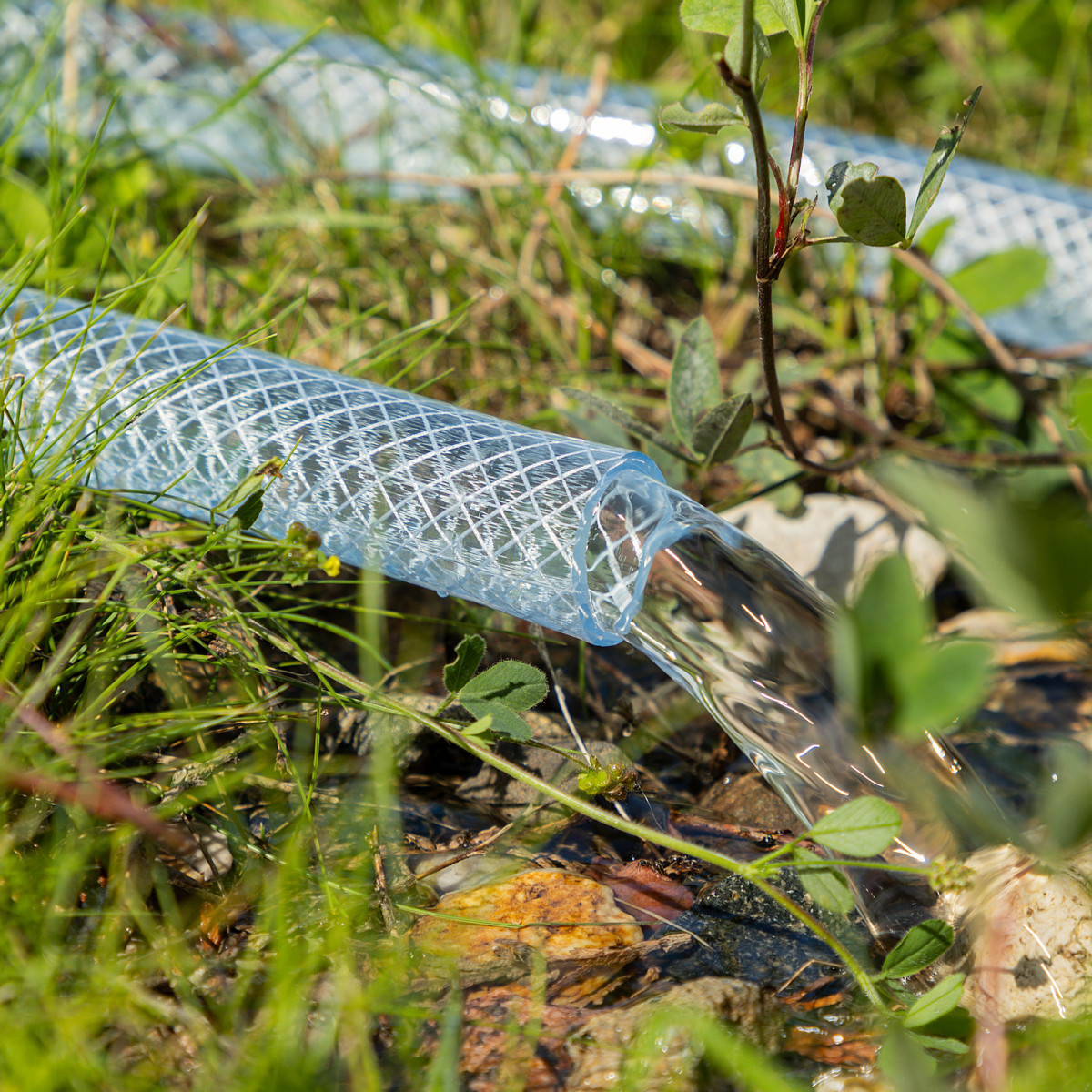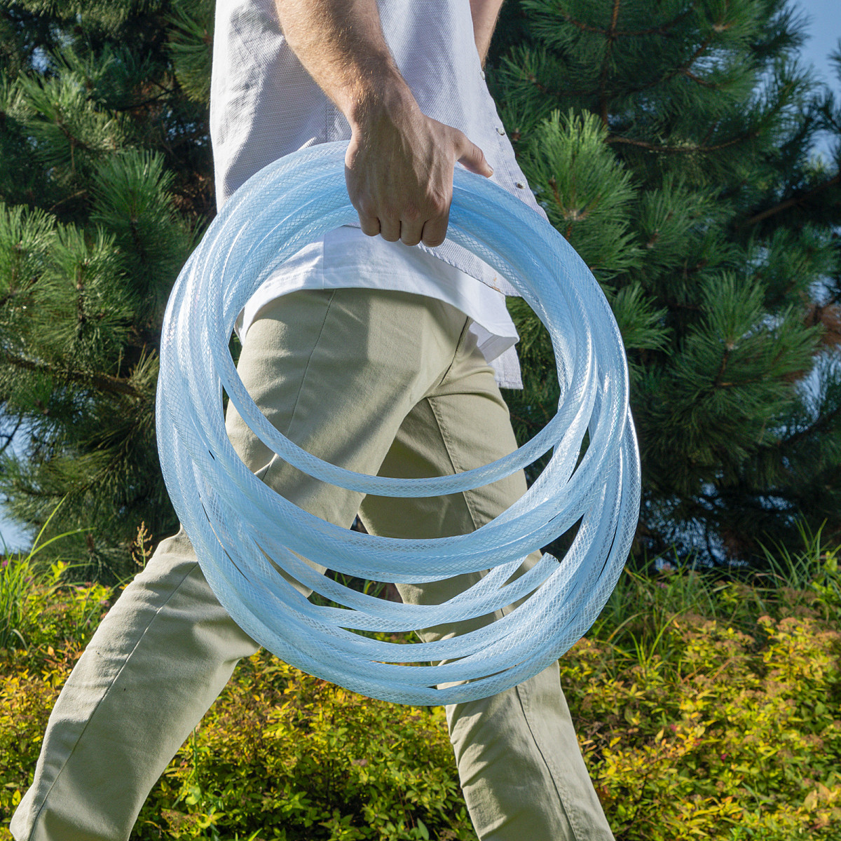 - Повышенная прочность — шланг изготовлен из поливинилхлорида (ПВХ) и армирован нитью из полиэстера.