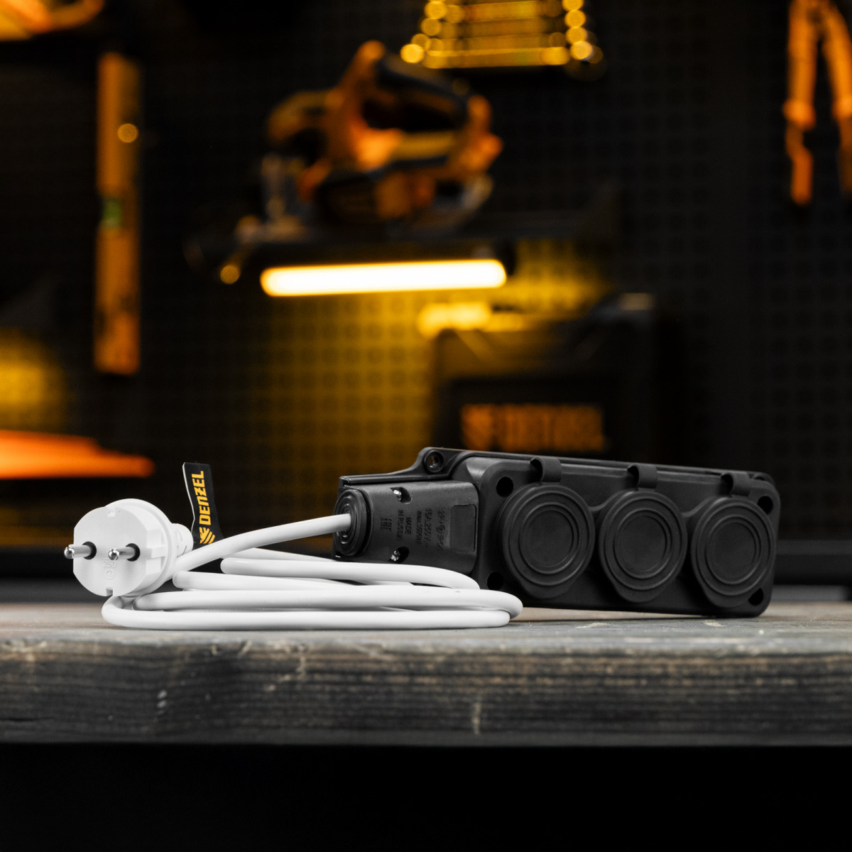 Шнур сетевой Energy Series, ПВС, 3 м, 2 x 1,5 мм, с неразборной вилкой, белый, Denzel