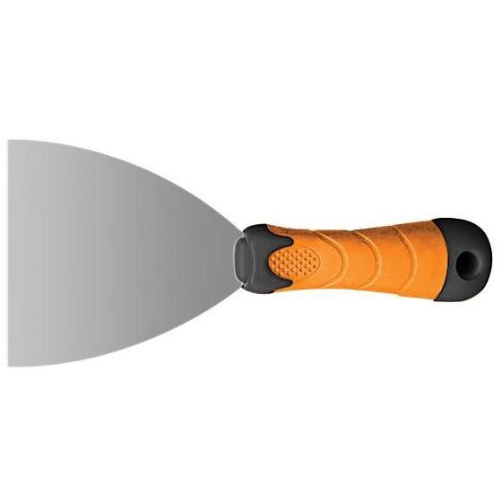 Шпатель 100 мм Master Color 30-2610 с прорезиненной 2К-ручкой - инструмент, который необходим для устранения дефектов на оштукатуренной стене. За счет небольшой ширины позволяет приложить максимальное усилие для затирки швов.