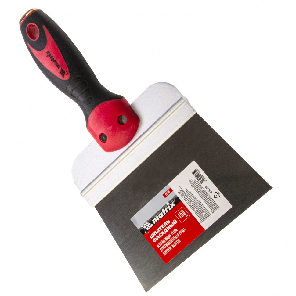 Шпатель фасадный из нержавеющей стали, 150 мм, двухкомпонентная ручка, широкое полотно Matrix