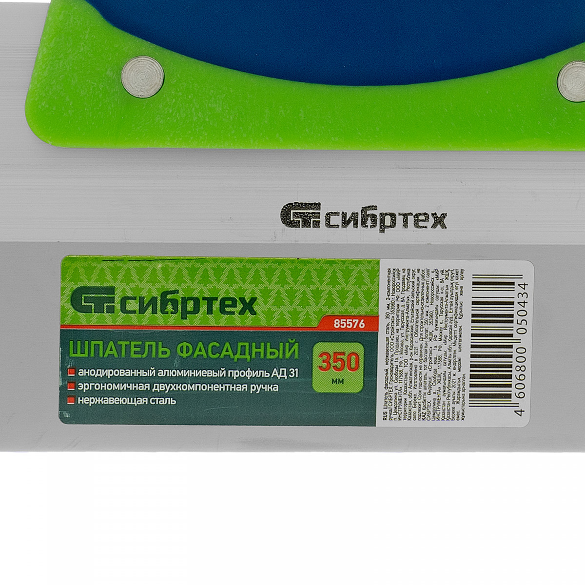 Шпатель фасадный, нержавеющая сталь, 350 мм, двухкомпонентная ручка Сибртех