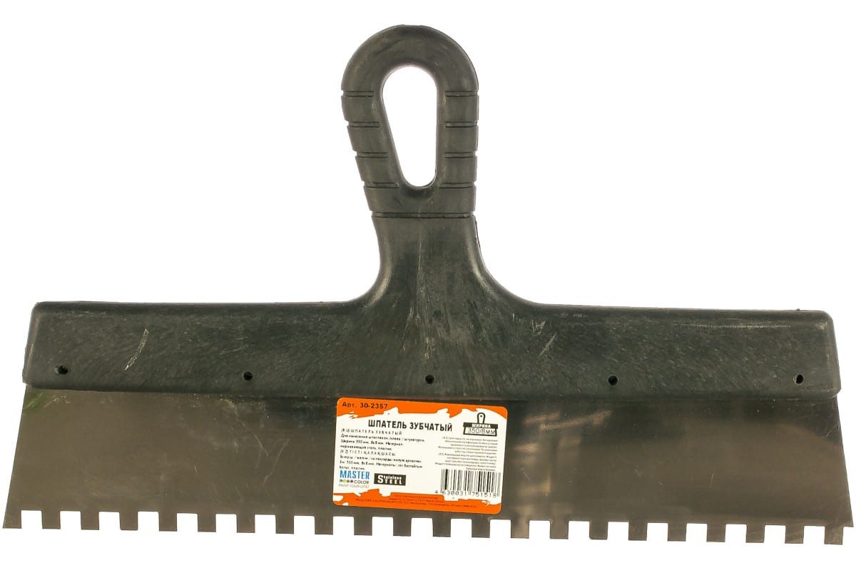 Шпатель зубчатый 350мм 8х8мм нержавеющая сталь пластиковая ручка МASTER COLOR