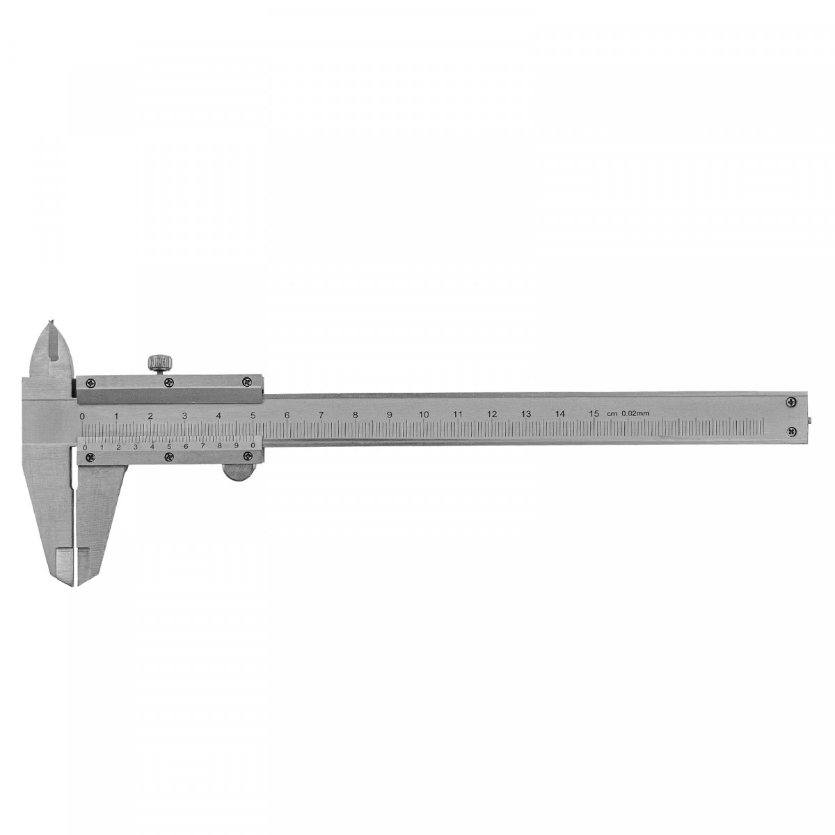 Металлический штангенциркуль с глубиномером Matrix 316315, 150 мм, со значением отсчета по нониусу 0,02 мм, используется для быстрого определения размеров внутри и снаружи деталей, а также глубин отверстий и канавок — для этого предусмотрен глубиномер. Погрешность составляет ±0,02 мм при измерении размеров до 100 мм, и ±0,03 мм — свыше 100 мм. Измерительный инструмент используется в токарном, слесарном деле, будет полезен на производственном предприятии, а также дома или в гараже.