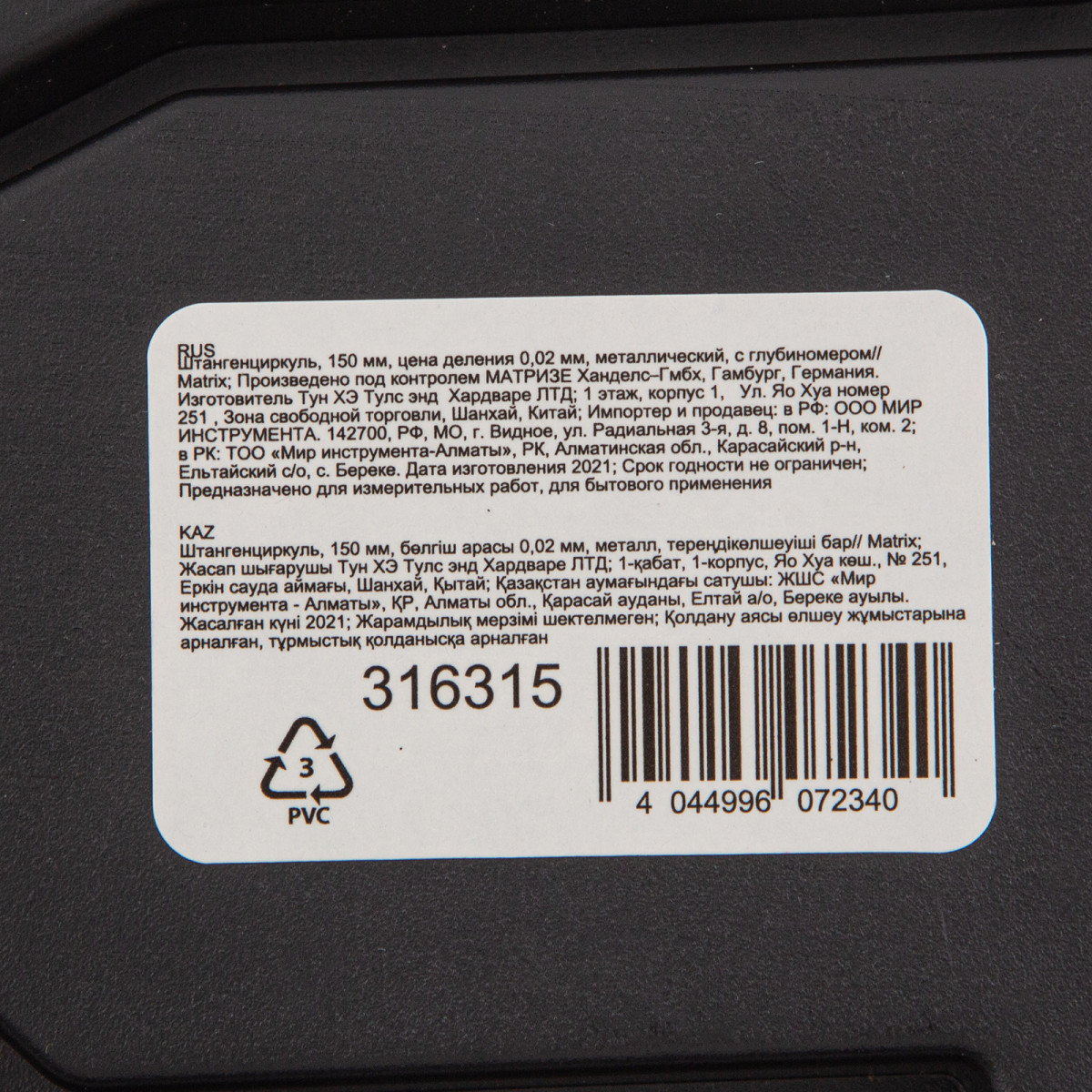 Штангенциркуль, 150 мм, цена деления 0.02 мм, металлический, с глубиномером Matrix