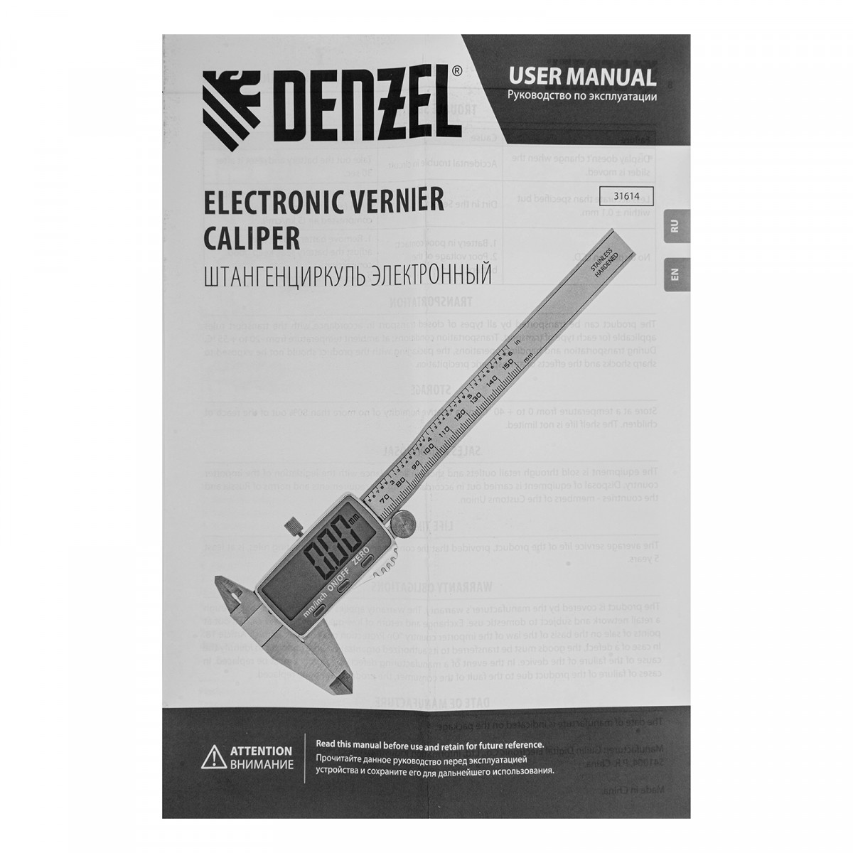 • Безопасная транспортировка и хранение — штангенциркуль упакован в прочный пластиковый кейс.
