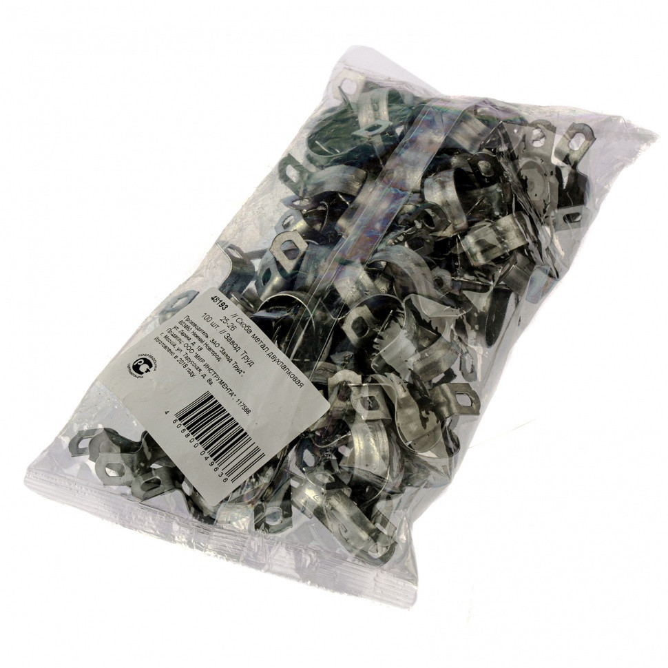 Двухлапковая металлическая скоба (СМД) Сибртех 48193 диаметром 25 мм, 100 шт. в комплекте, используется для крепления труб, проводов и шлангов на различных строительных конструкциях, имеющих 2 параллельных ряда крепежных отверстий. Обеспечивает надежную фиксацию даже под воздействием сильных вибраций и сдвигающих нагрузок.