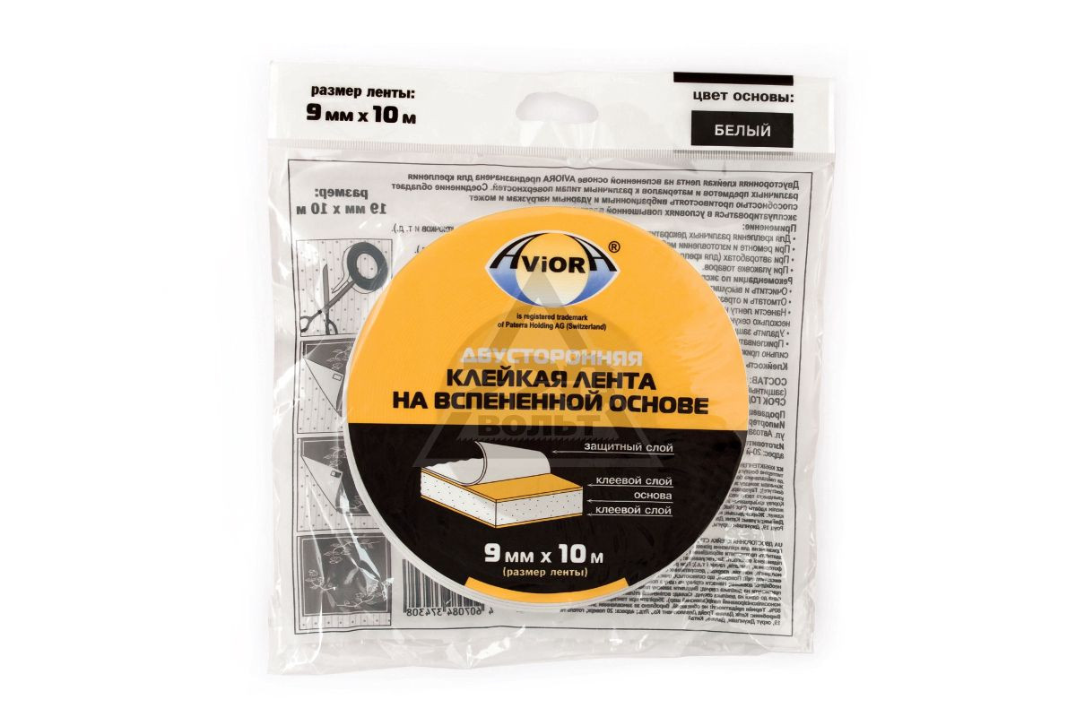 Скотч двухсторонний AVIORA на вспененной основе 9мм*10м, белый