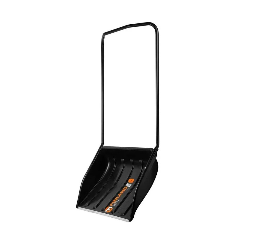 Обладает ковшом из морозостойкого пластика, который на конце внешней рабочей части имеет алюминиевую окантовку.Наличие П-образной металлической рукоятки упрощает работу.Конструкция нескладная