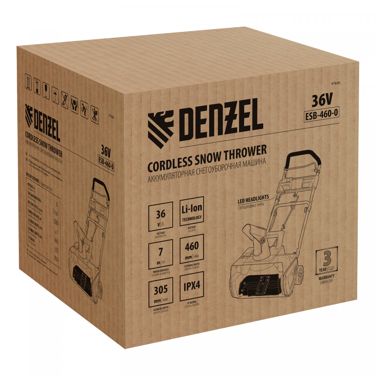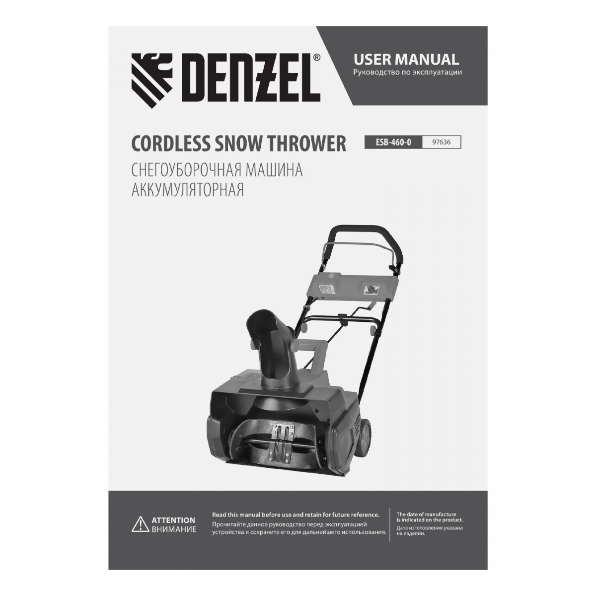 Снегоуборочная машина аккумуляторная, ESB-460-0, Li-Ion, 36В Denzel