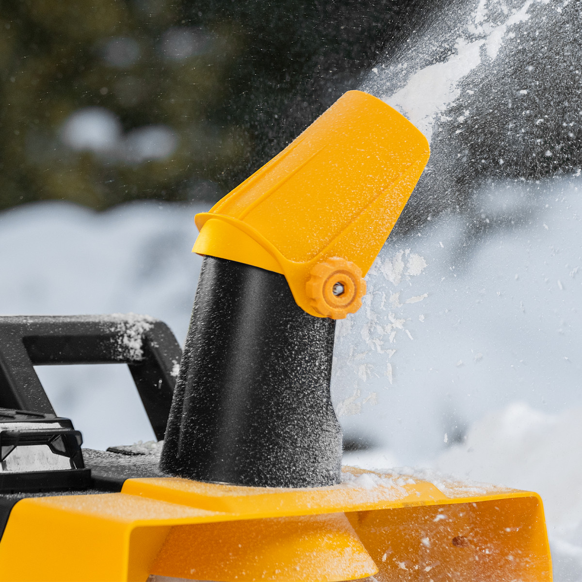 • Регулировка направления выброса снега — угол поворота желоба можно изменить при помощи удобной рукоятки.