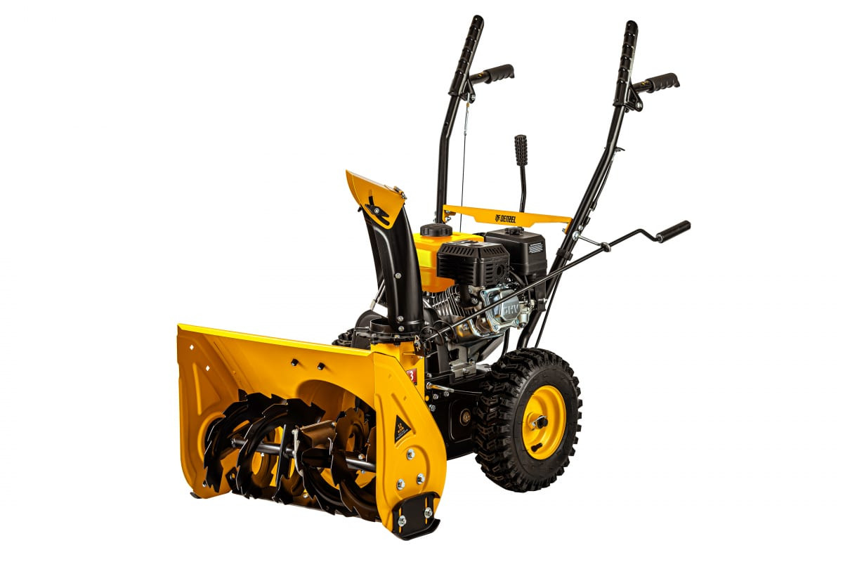 Снегоуборщик относится к самоходному типу с двухступенчатой системой забора снега.