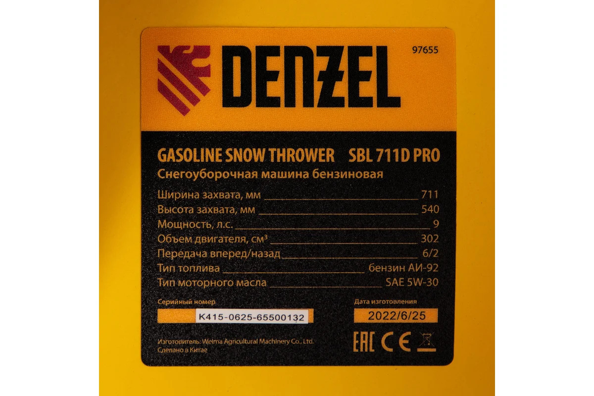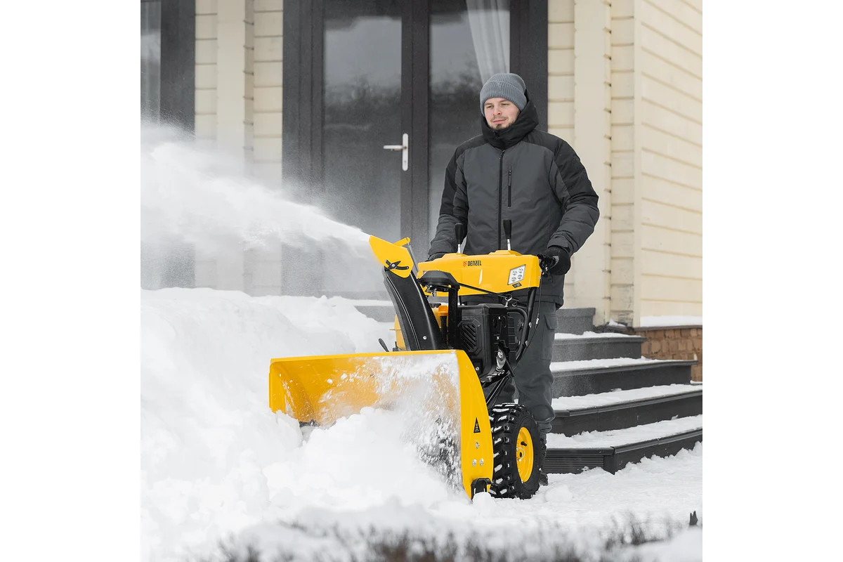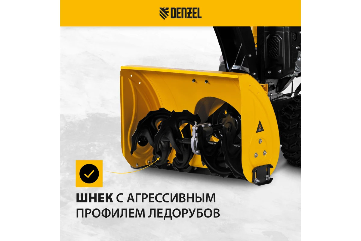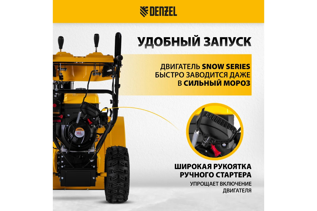 Бензиновый снегоуборщик Denzel SBL 711D PRO, 302cc 97655 - профессиональный выбор для коммунальных служб, организаций, а также людей ценящих комфорт, функционал и эстетичный внешний вид. Машина предназначена для уборки территорий загородных домов, коттеджей, подъездных дорог и улиц СНТ, парковок и городских дворовых территорий. Двигатель зимней серии объемом 302 см3 с увеличенным крутящим моментом, кожух шнека с шириной 711 мм и высотой захвата 540 мм обеспечивают эффективную и быструю уборку больших сугробов даже слежавшегося снега с ледяной коркой.