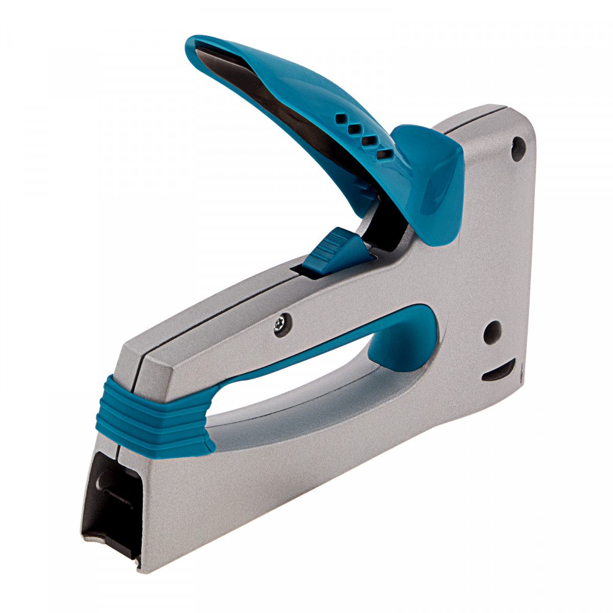 • Комфорт во время работы — эргономичная рукоятка обеспечивает оптимальное положение кисти руки, что снижает усталость при длительном использовании степлера.