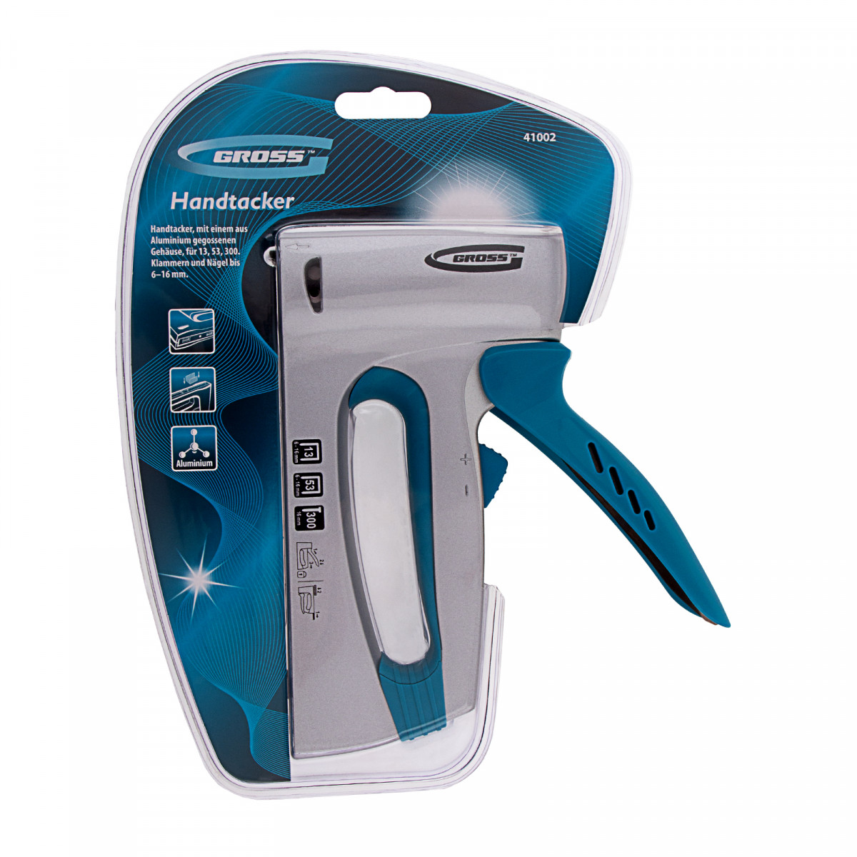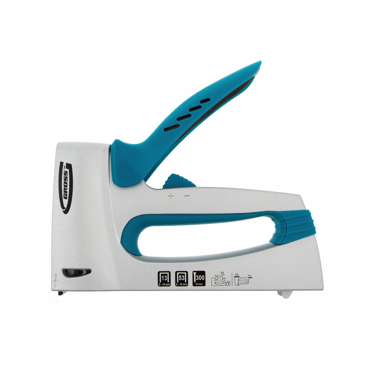 Степлер мебельный, алюминиевый корпус, регулировка удара, тип скобы: 13, 53, 300, 6-16 мм Gross