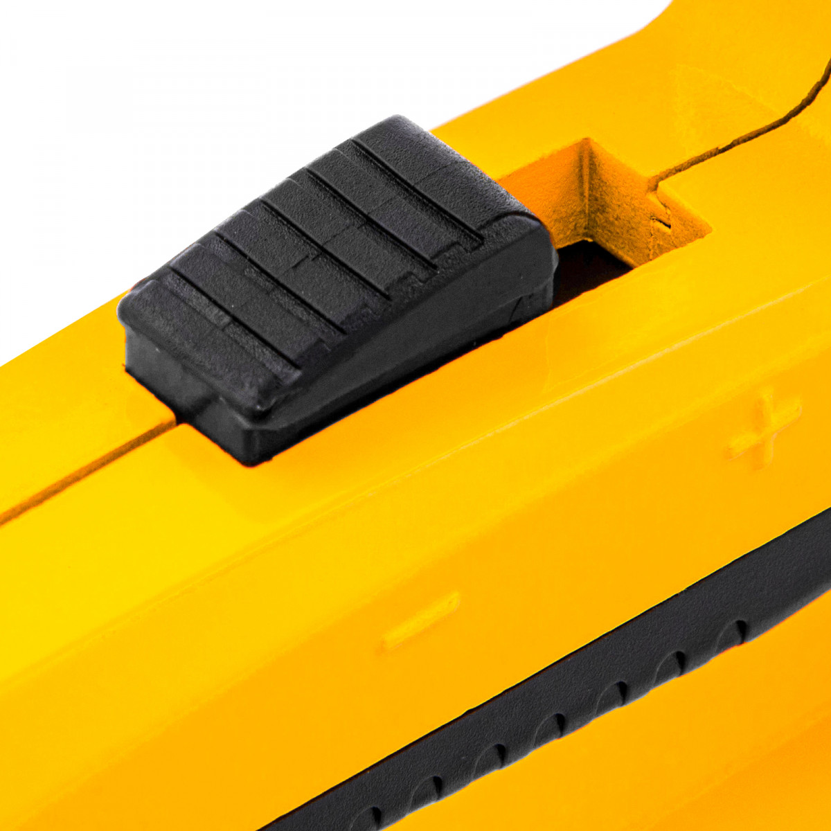 - Безопасное хранение и транспортировка — металлическая скоба фиксирует рукоятку в нерабочем положении, предотвращая случайное срабатывание механизма.
