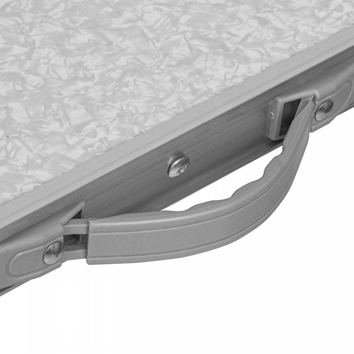 - Комфорт при транспортировке — на боковой стороне столешницы имеется ручка, за которую стол удобно перемещать.