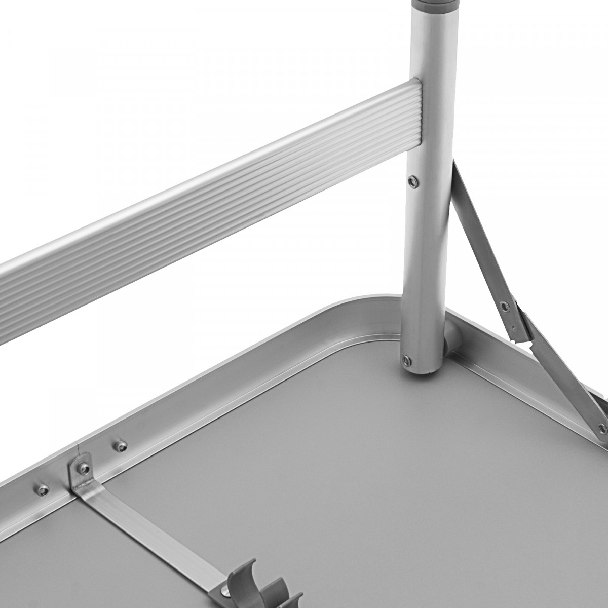 Складной стол Palisad Camping 69582 размером 600 х 450 х 250 / 590 мм, со столешницей из МДФ, позволяет организовать прием пищи для нескольких человек. Пригодится во время отдыха на дачном участке, на пикнике, а также послужит дополнительным столом в случае визита гостей. За счет алюминиевых ножек имеет облегченную конструкцию и весит всего 2,52 кг, поэтому удобен в транспортировке. Благодаря составным ножкам стол можно зафиксировать на высоте 25 или 59 см.