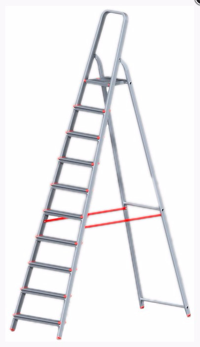 Надежная конструкция и рельефная поверхность ступеней стремянки (10 ступеней) HALTA обеспечивают высокую безопасность; противоскользящие опорные заглушки, дуга безопасности 600 мм, проста в использовании, небольшие габариты и малый вес.