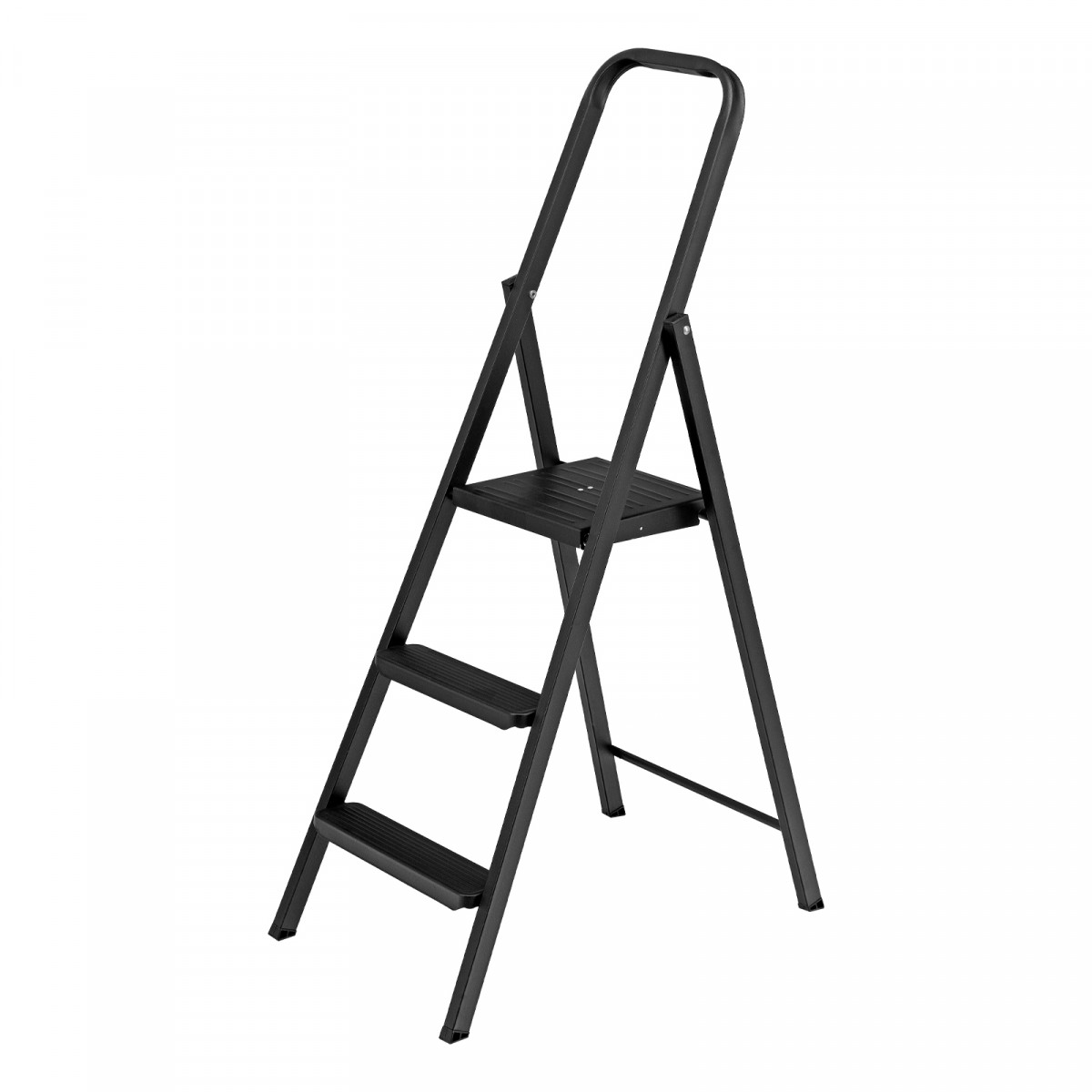 Стремянка компактная стальная Сибртех 97943 с 3 ступенями служит для проведения работ на высоте, превышающей человеческий рост. Стальные профилированные рама и ступени рассчитаны на нагрузку до 150 кг. Площадка находится на высоте 64 см от опорной поверхности, рабочая высота стремянки составляет 264 см (при среднем росте пользователя 170 см). Использовать стремянку можно дома, на даче или в гараже, а также во время строительства и ремонта.