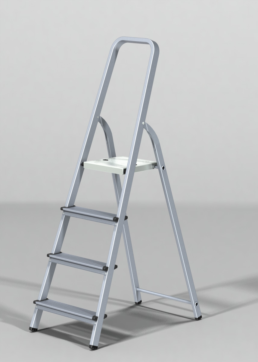 Стремянка Новая Высота 4 ступени  предназначена для интенсивной эксплуатации. Устойчива на любой поверхности. Профилированные ступени обеспечивают уверенный подъем работника на высоту. Страховочные ремни придают конструкции жесткость и не дают стремянке сложиться. При хранении лестница не занимает много места, а благодаря небольшому весу легко транспортируется.
