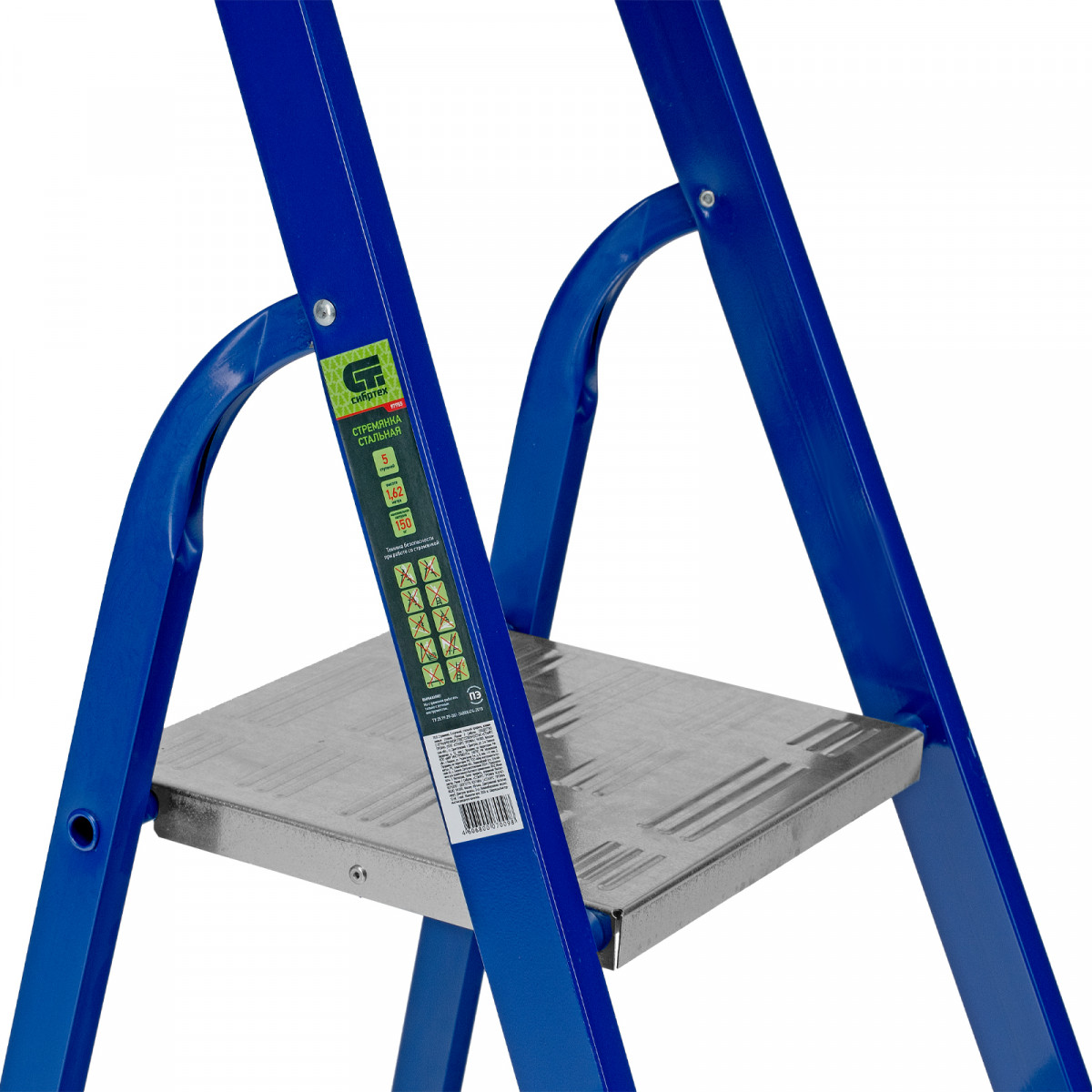 Стремянка, 5 ступеней, стальной профиль, алюминиевые ступени Сибртех