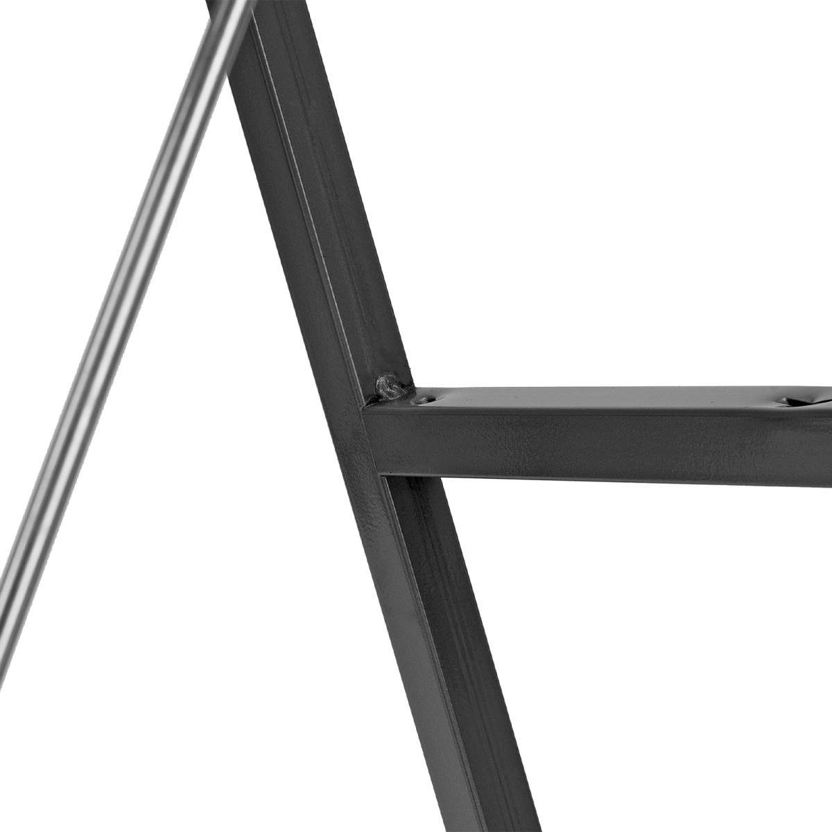 • Прочность — рама и ступени изготовлены из стали, поэтому стремянка выдерживает нагрузку 120 кг.