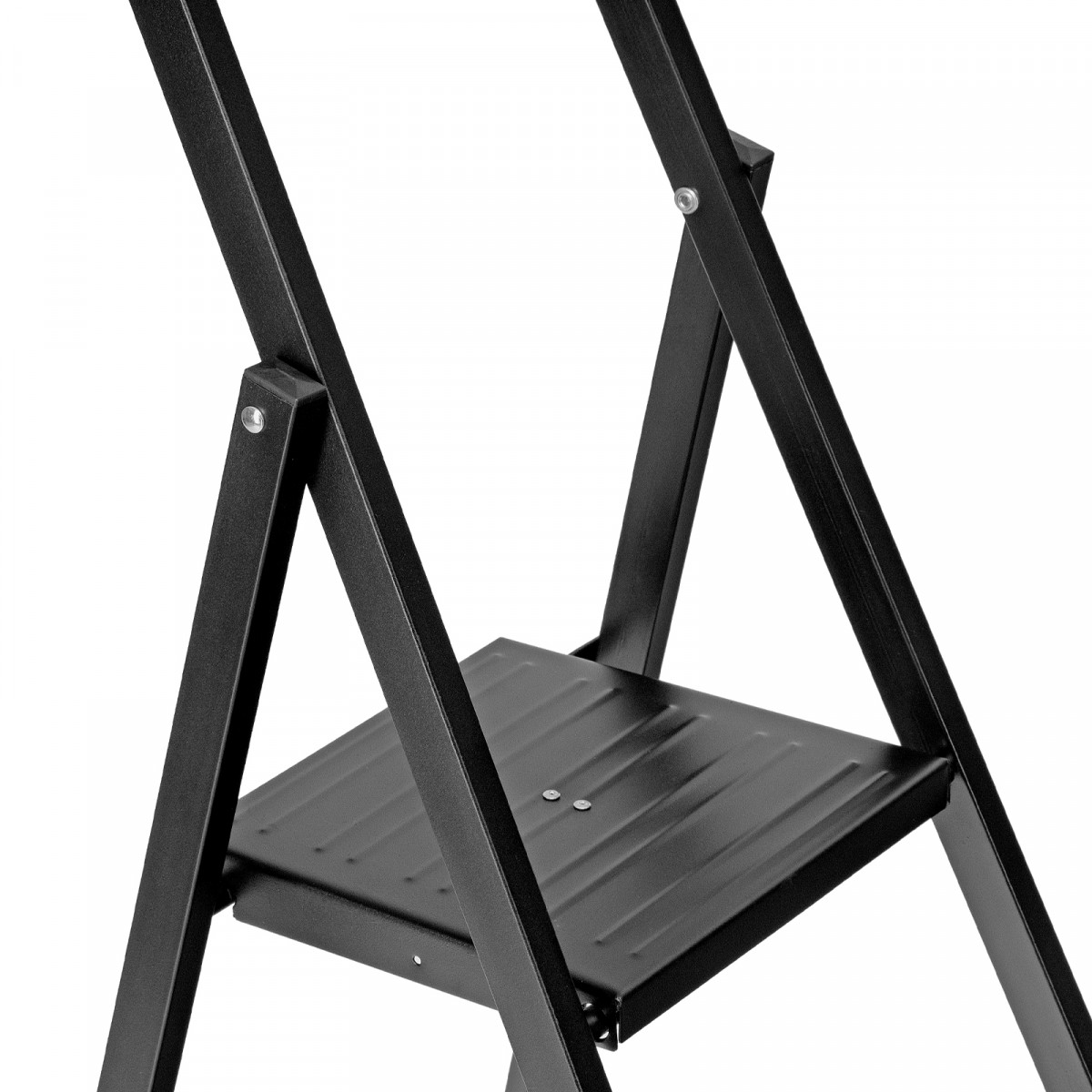 Стремянка имеет антрацитовое покрытие порошковой эмалью, защищающее от коррозии.