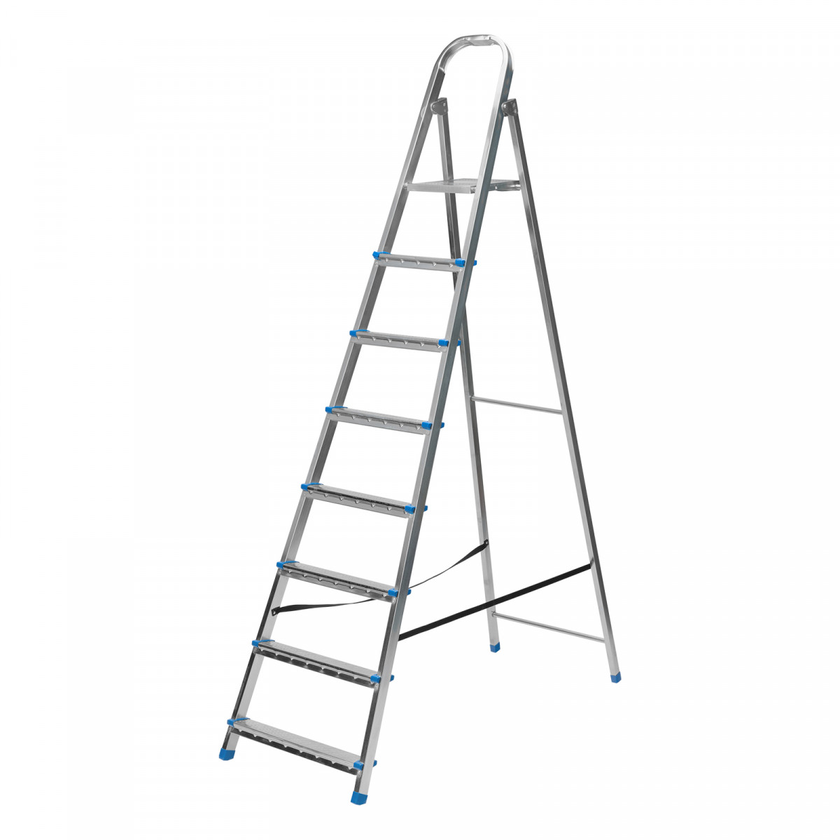 Стальная оцинкованная стремянка Сибртех 97840 с 8 ступенями позволяет выполнять ремонтные и садовые работы, для которых требуется доступ к предметам на высоте. Рама и ступени из стального профиля выдерживают вес до 120 кг. Расстояние от опорной поверхности до площадки составляет 166 см, при среднем росте пользователя 170 см рабочая высота лестницы — 366 см. Необходимо соблюдать технику безопасности: размещать стремянку только на ровной плоскости и не использовать ее для работы с дрелью, шуруповертом и другим электроинструментом.