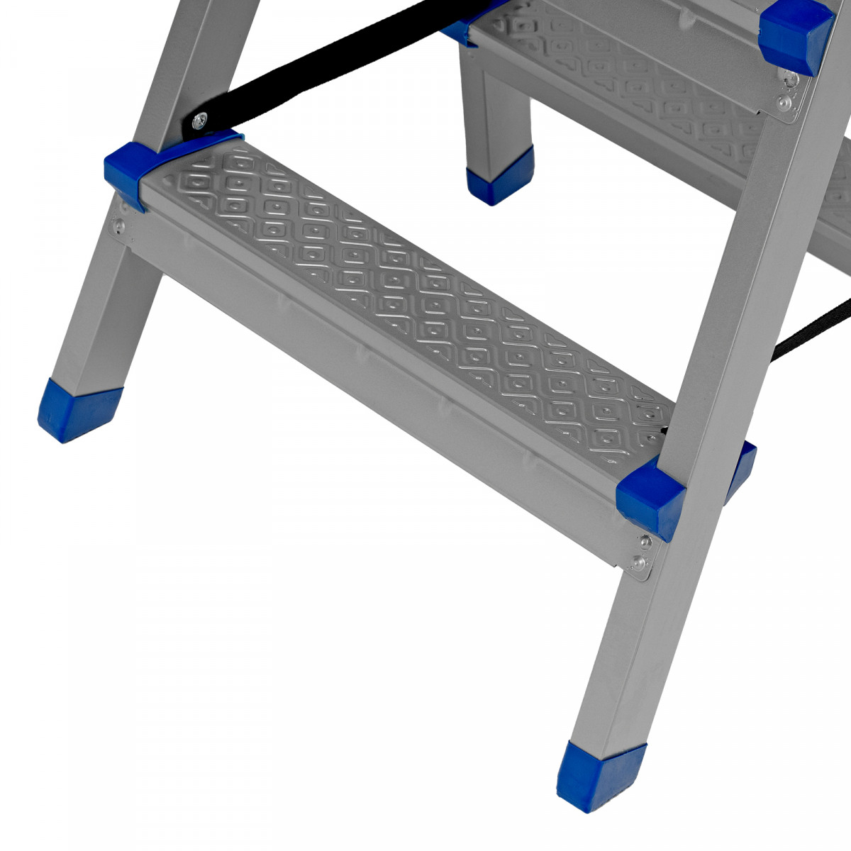 • Безопасность пользователя — на рифленых широких ступенях ступни не скользят, на углах имеются пластиковые наконечники для защиты от травм.