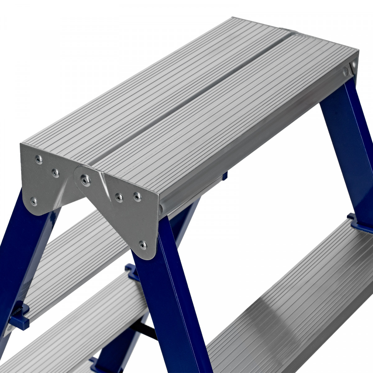 • Безопасность пользователя — широкие алюминиевые ступени не прогибаются, их рифленая поверхность не дает поскользнуться.